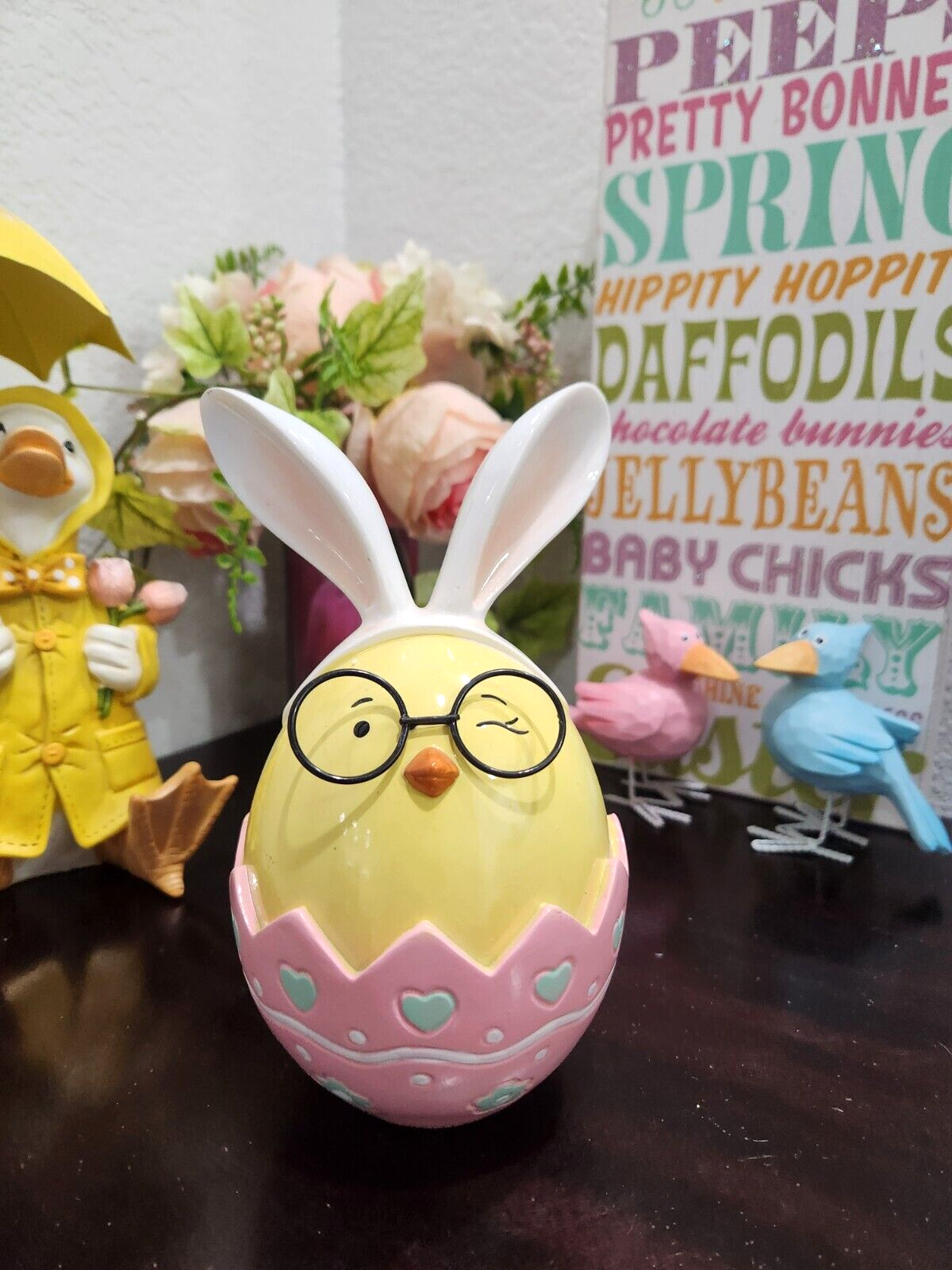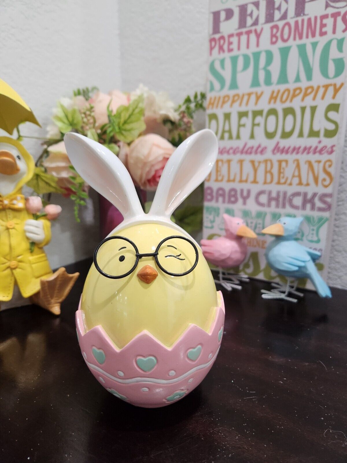 Easter Bunny Rabbit Wearing Glasses Bunny Rabbit Ears Figurine Home Decor 7.25"