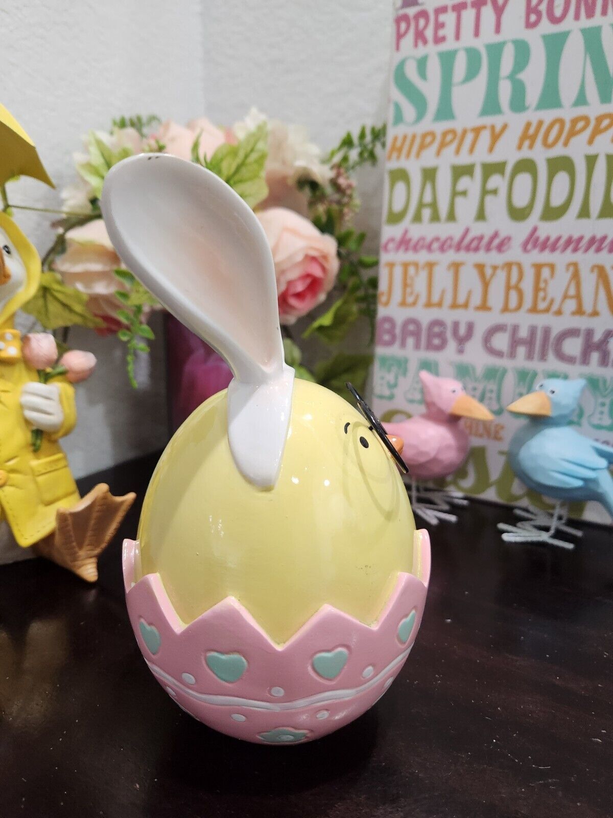 Up for sale is this super cute bunny rabbit wearing glasses and bunny ears. The bunny is too cute!! It will look amazing with your decor. Made of resin. It stands approx 7.25" tall. Sooo cute!