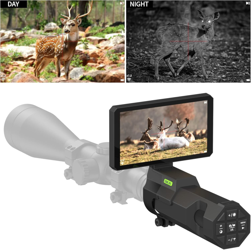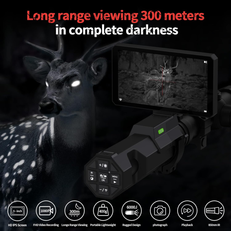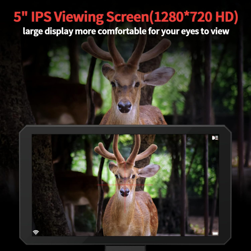 ?5? IPS Screen Clip-on Rifle Scope?With the large 5? LCD screen on the back of the module makes the night vision rifle scope really easy to view what you are aiming into the dark at once you?ve properly adjusted the camera lens.