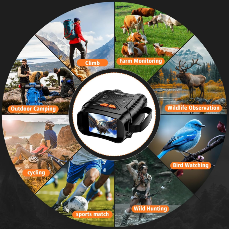 ?Secure and Convenient Use?Featuring an anti-fail hand strap and neck strap, these night vision goggles military tactical ensure secure handling and prevent accidental drops during outdoor activities. Additionally, they are tripod mountable for stable, hands-free viewing during extended observations, providing both safety and convenience