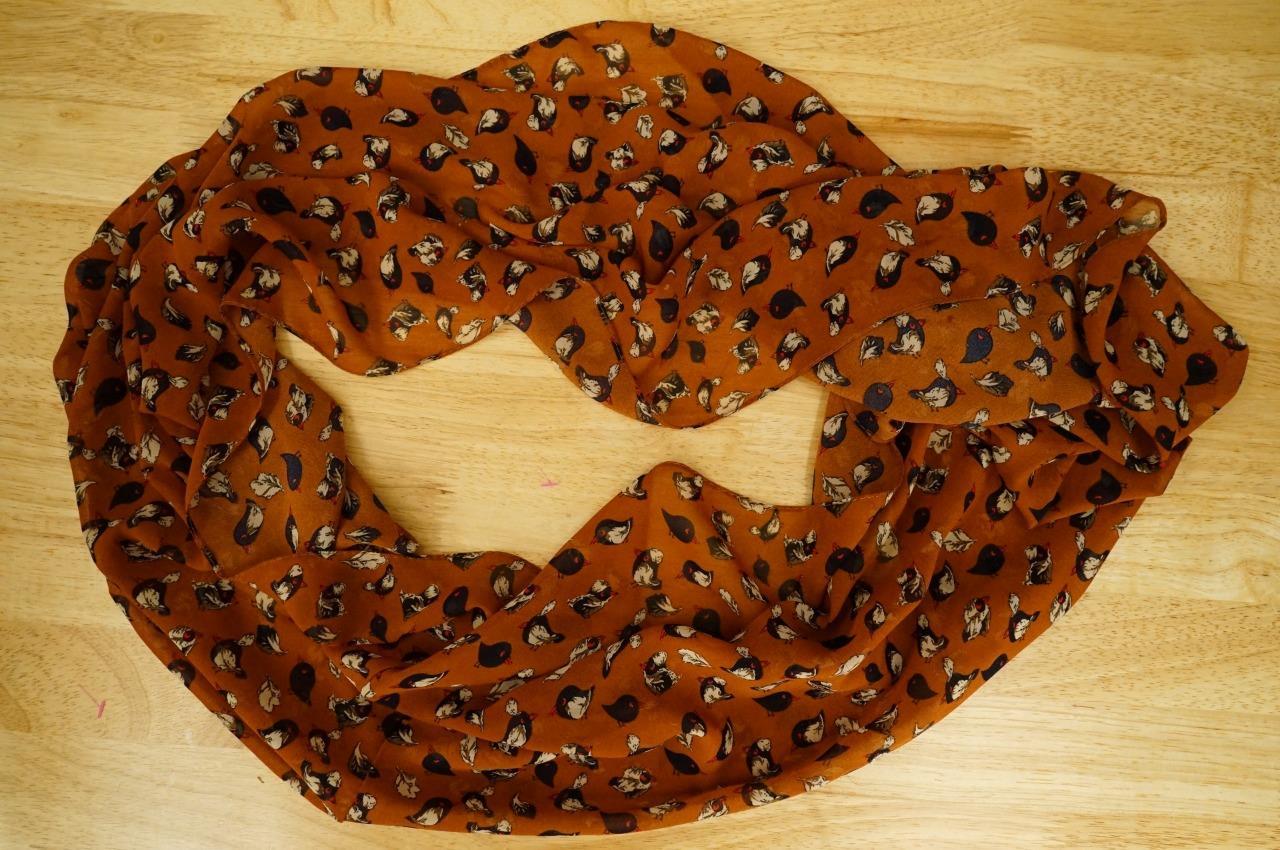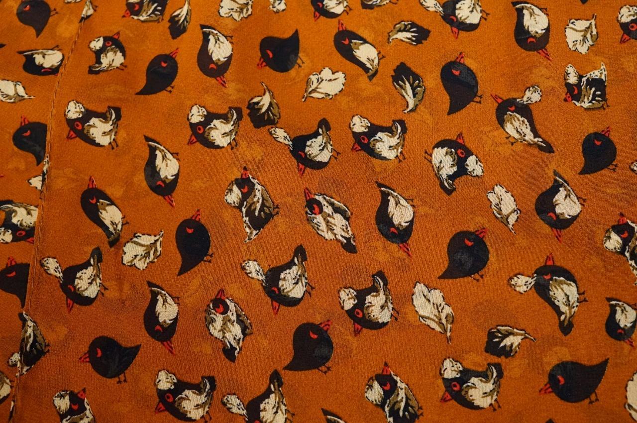 Infiniti Scarf Navy Blue Cream Bird Chintz Print Brown Field Polyester 18x68