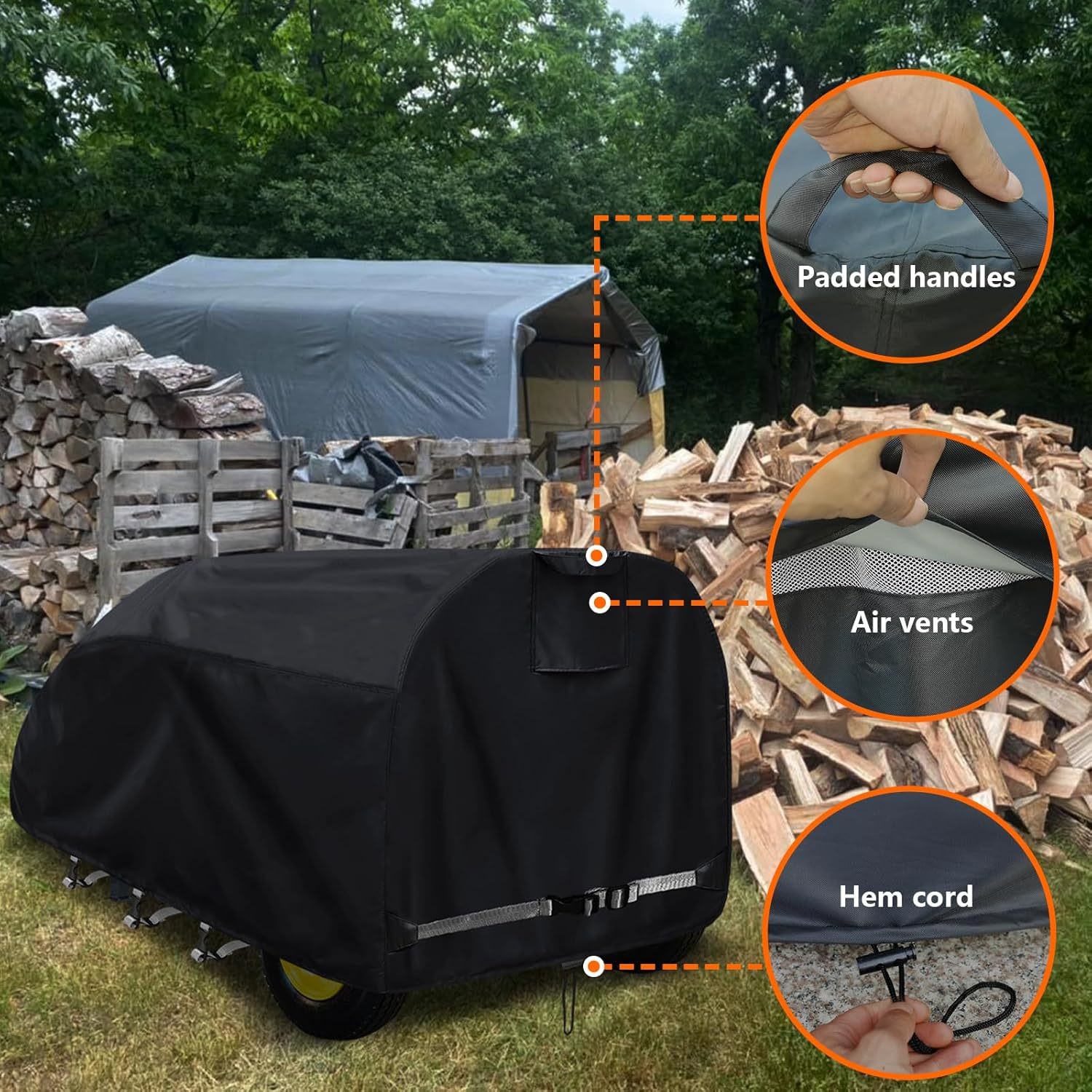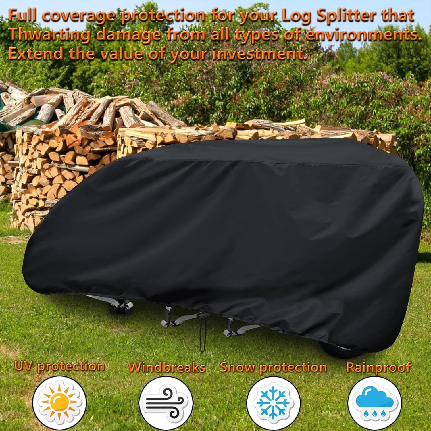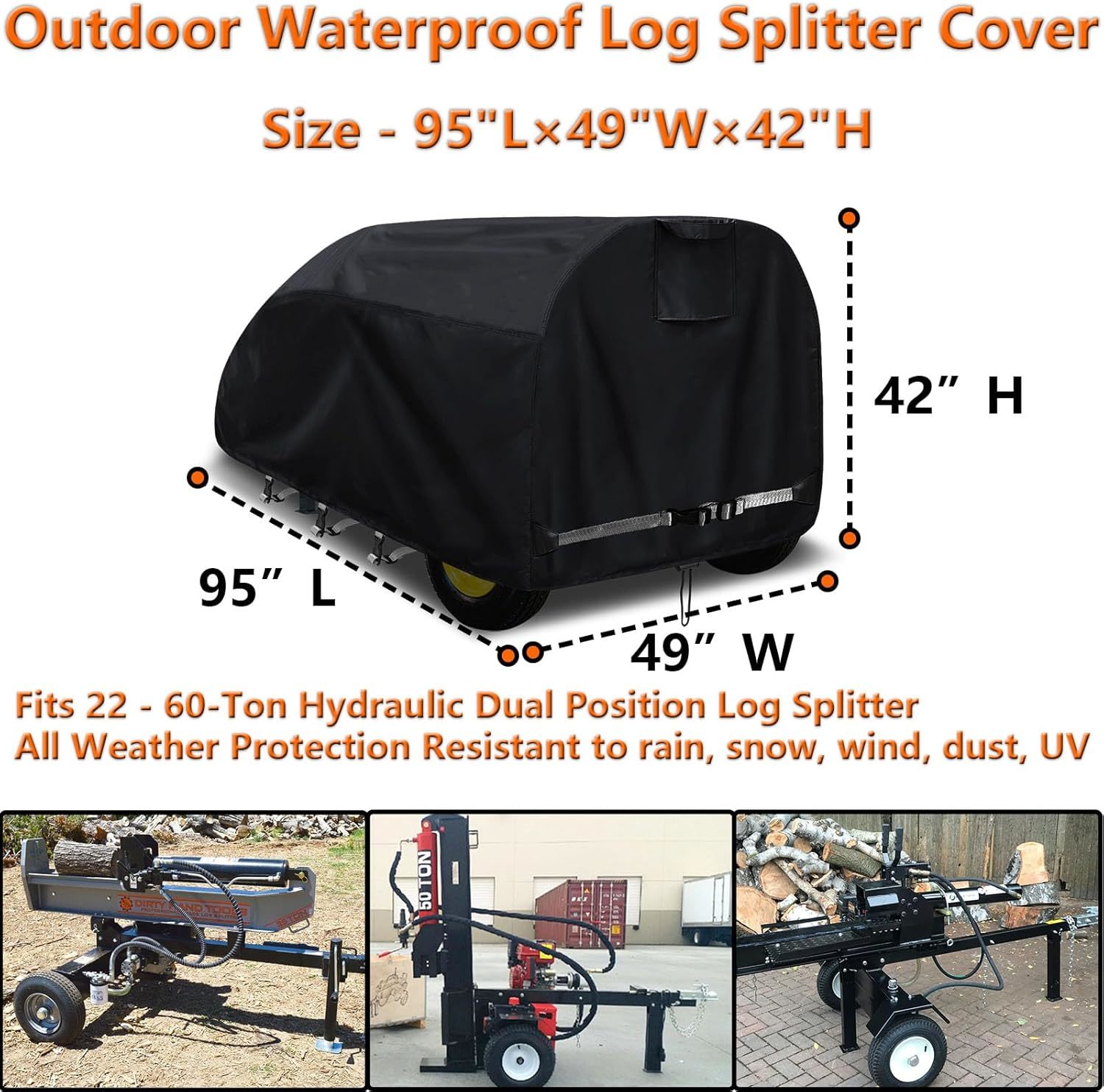Log Splitter Cover Waterproof Heavy Duty Windproof Design 95" L49" W42", Black