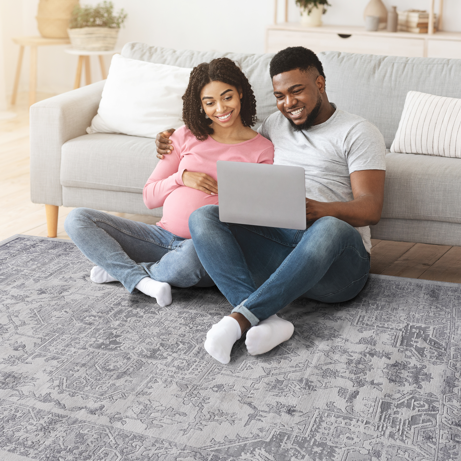 Luxury Non-Shedding Area Rug: Silver/Oriental and 49 similar items