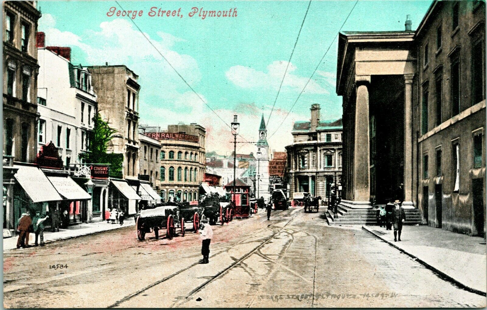 Vtg Postcard Plymouth United Kingdom UK George Street View Snow Valentine's UNP