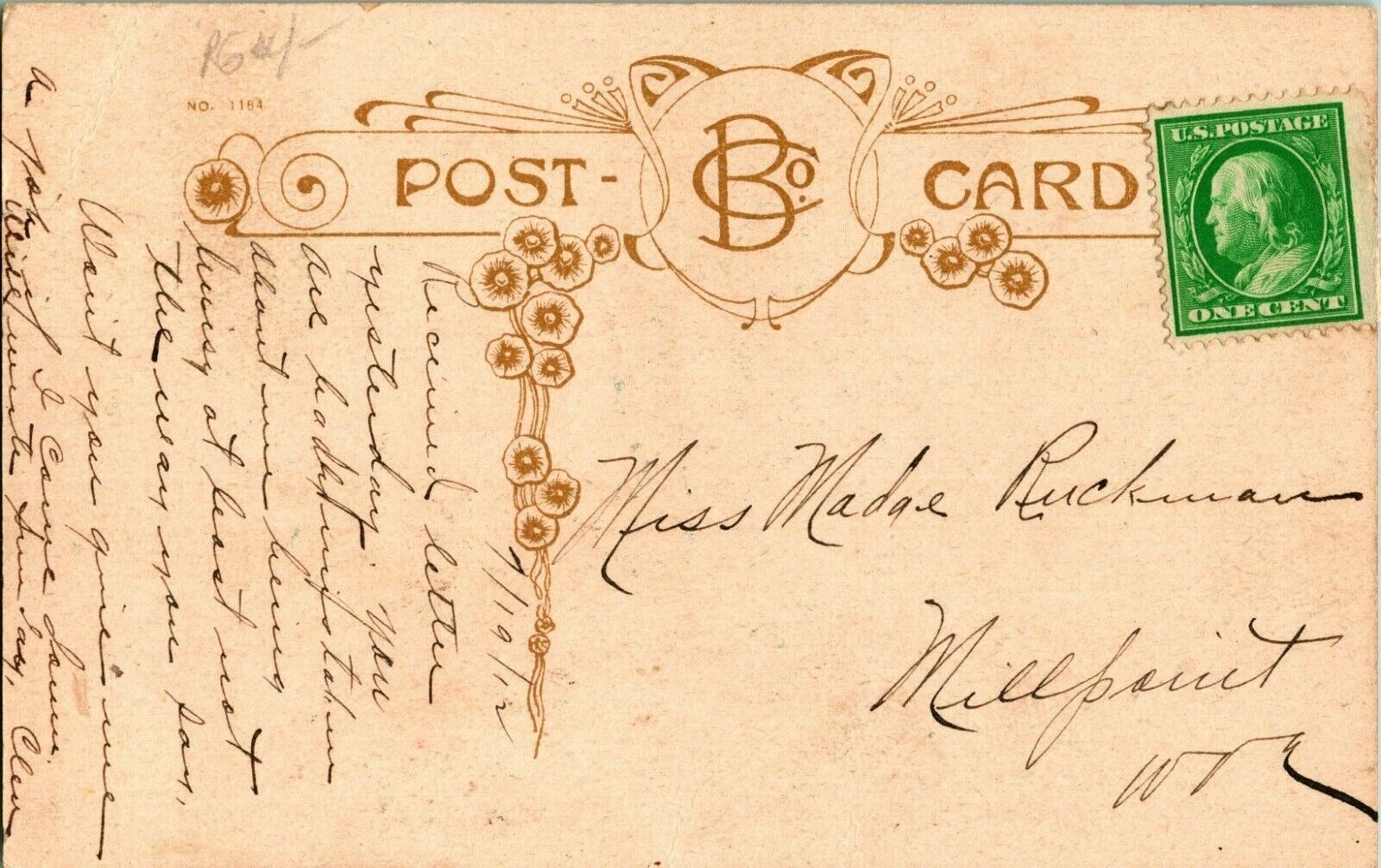 Normal wear associated with an old postcard it might have creases, a corner bump, ink on the front, etc. See picture for a depiction of condition and feel free to ask any questions.