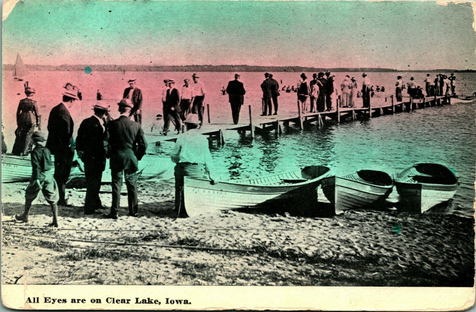Dock and Canoes All Eyes on Clear Lake Iowa IA UNP 1910s DB Postcard