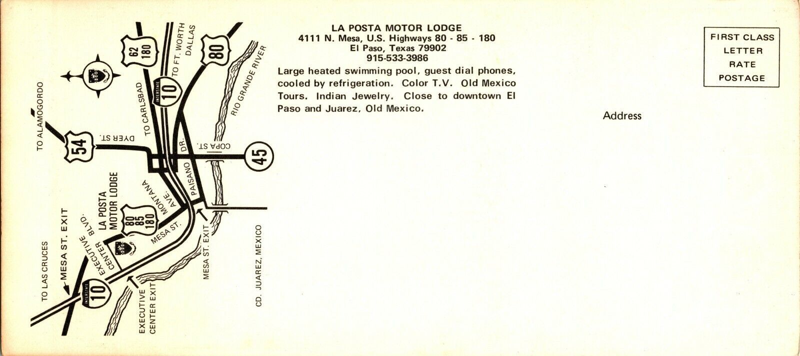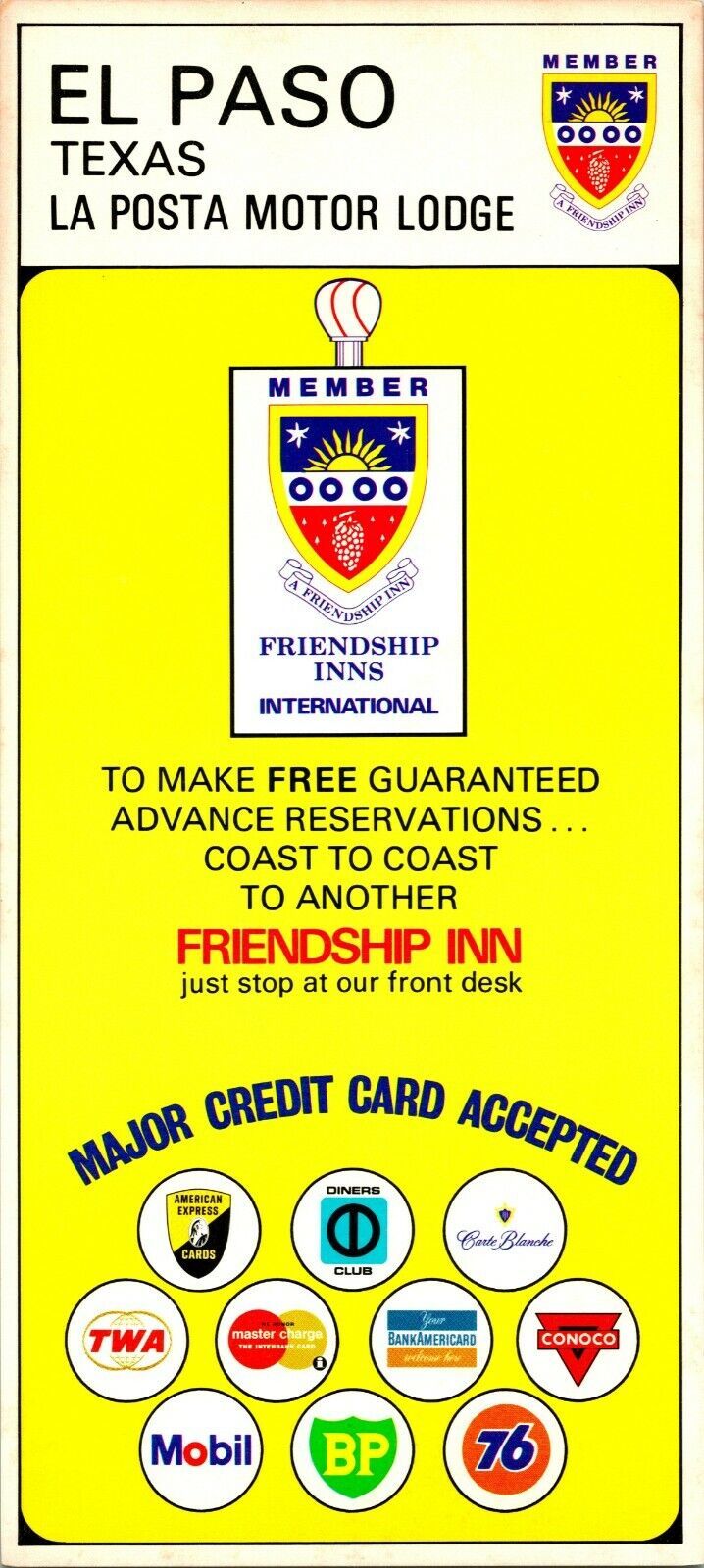 Vtg Chrome Postcard El Paso TX Texas 9x4 La Posta Motor Lodge Friendship Inn UNP
