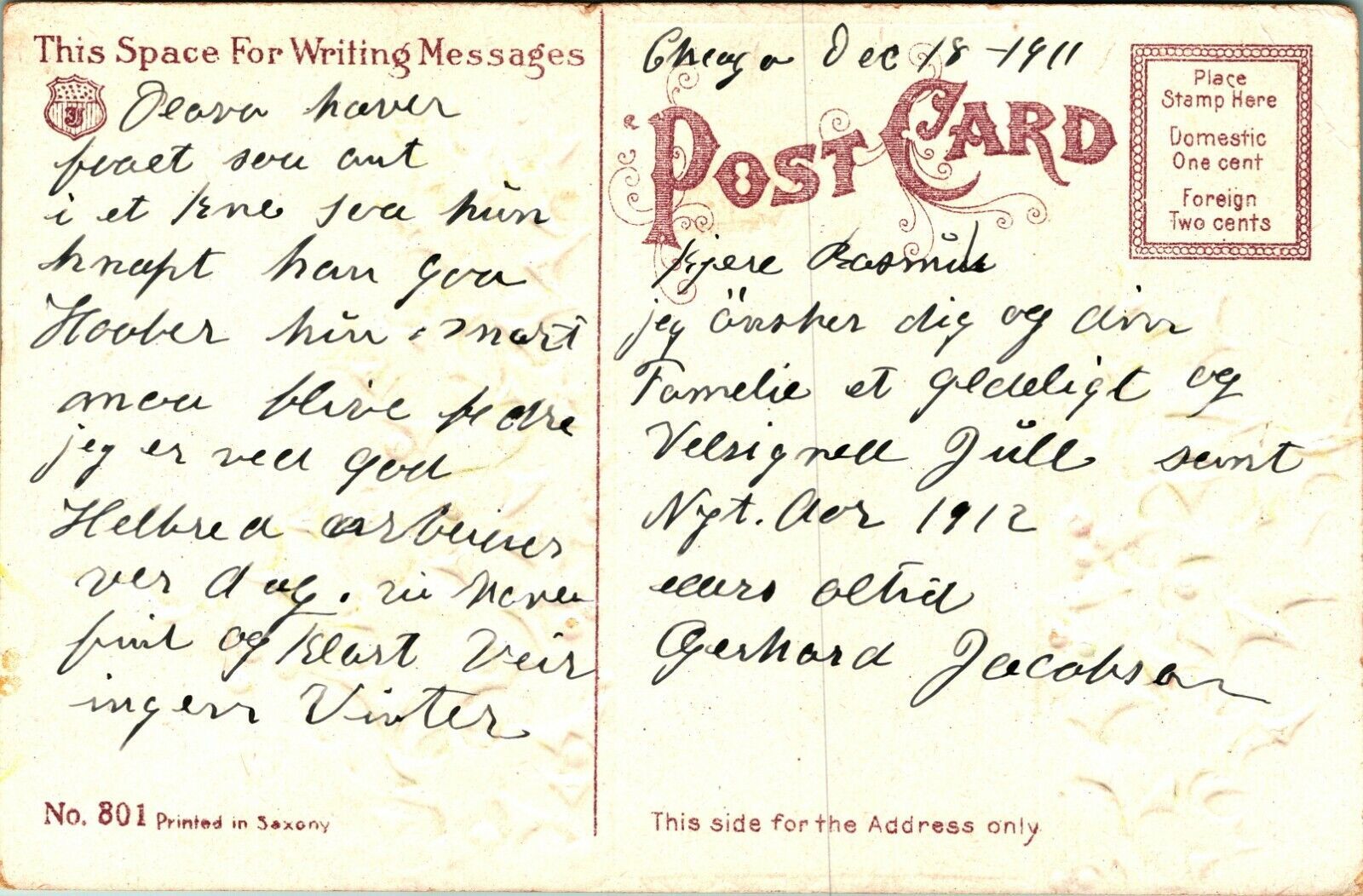 A Merry Chirstmas Scrolled Note Field Holly Bunch Berries Embossed 1911 Postcard