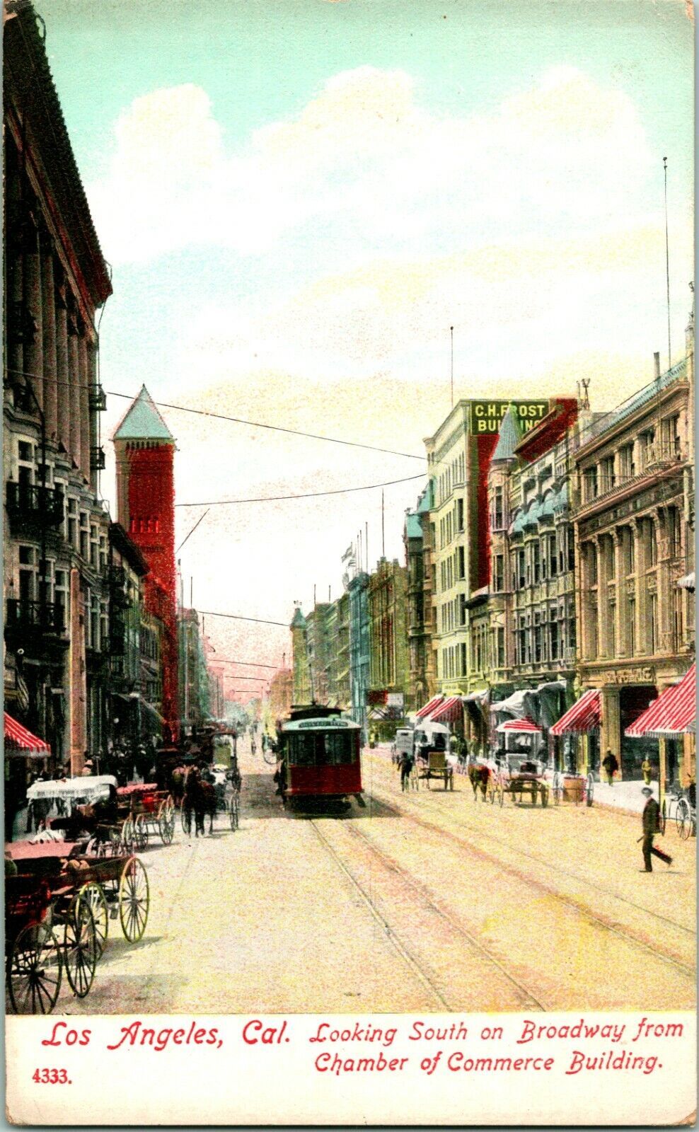 Vtg 1910s PCK Postcard - Los Angeles CA Broadway Looking South Street View UNP