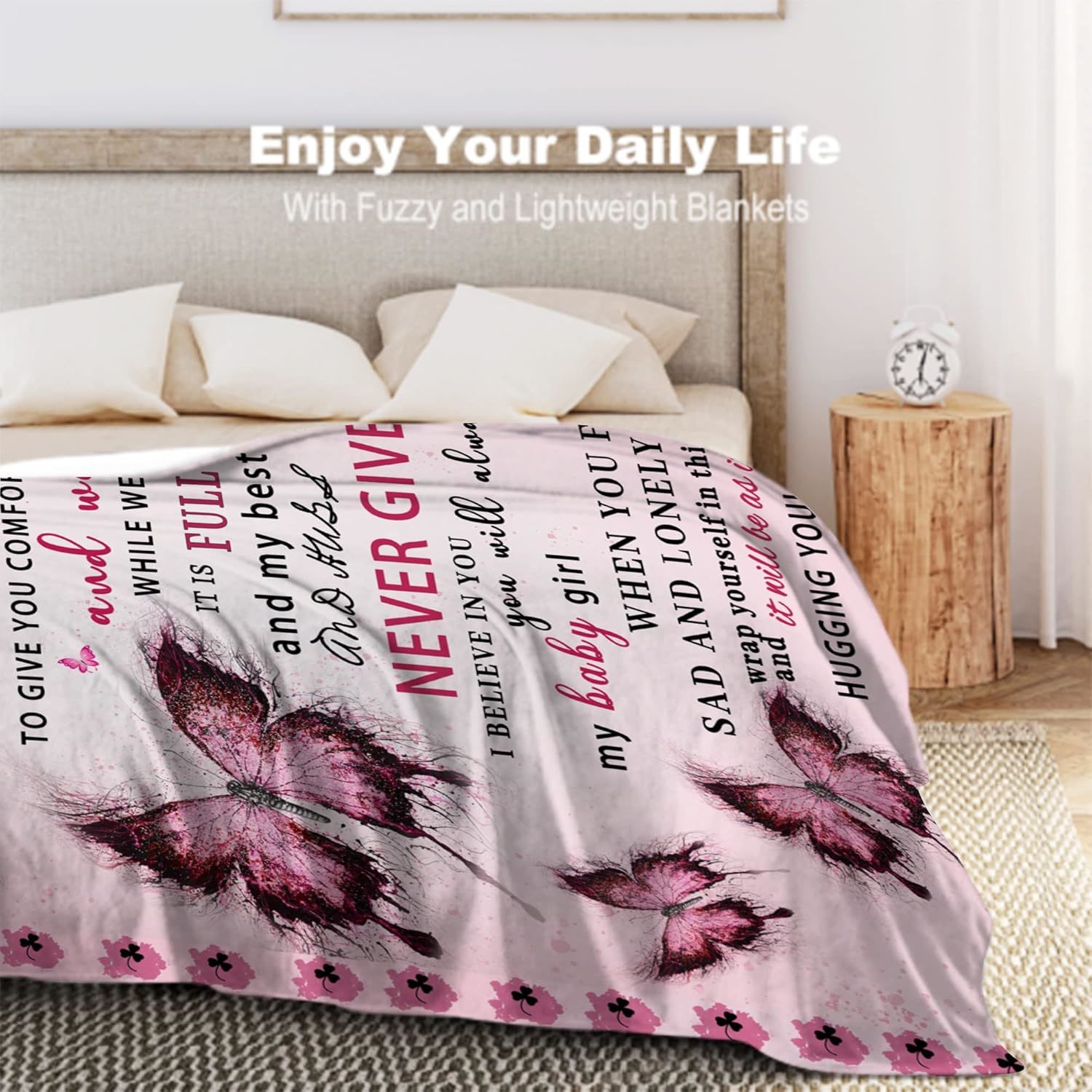 ? ?MATERIAL SIZE? 60 x 50 In (150 X 125 cm). The material of the blankets adopt a kind of anti-pilling flannel. The purpose of this daughter blanket not only brings warmth, and feeling of love. The daughter gift blanket printed with meaningful words, which greatly conveys your deep love for daughter. ? ?SOFT DURABLE?: This flannel throw blanket is ultra soft, super cozy, breathable, practical, comfortable, Light weight, durable and can be folded compactly. Completely resistant to shrinkage and wrinkling. The blankets have a velvety fuzzy feeling, unique design, soft to the touch, anti-pilling, anti-allergic, anti-wrinkle, no shedding and non-falling characteristics. ? ?PERFECT GIFT FOR DAUGHTER?Our this ultra soft flannel blanket is designed with thoughtful caring personal gift for daughter.And perfectly as a great daughter gift, such as Birthday gifts for daughter, Daughter gifts for graduation, Gifts for daughter from mom, Blanket for daughter from mom, Birthday gifts for daughter adult, Christmas gifts for daughter, Mother daughter gifts, Daughter gifts for mothers day, Daughter birthday gifts ideas. ? ?MULTIPURPOSE?The blanket with unique design makes it be a great gift idea, such as Birthday gift, Anniversary gift, Christmas gift, Valentines Day gift, Thanksgiving Day gift, Mothers day gift, New year gift, Easter gift and other festivals or special times. Suitable for both indoors and outdoors, sofa, bed, travel, camping, cold cinema, air-conditioning room and home decor. ? ?EASY CARE ?No need to spend more special effort. Hand washable with mild detergent. Machine washable in cold water with similar colors. No bleach. Avoid direct heat. Due to the Vacuum Compression Package, Please washing it before using it for a sense of better experience.