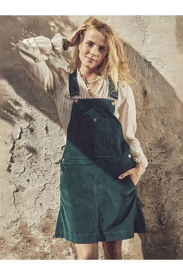 Our bestselling overalls, reimagined as the perfect fall dress. The luxuriously soft cotton-based corduroy is sourced from France, and takes color beautifully for a rich autumnal look. Practical details include multiple pockets, a hammer loop, and adjustable straps for the perfect fit. In a charming A-line silhouette that hits just above the knee, the York has a timeless appeal. It pairs just as well with feminine blouses and lightweight tops in the summer as it does over tights and sweaters when cooler weather sets in.