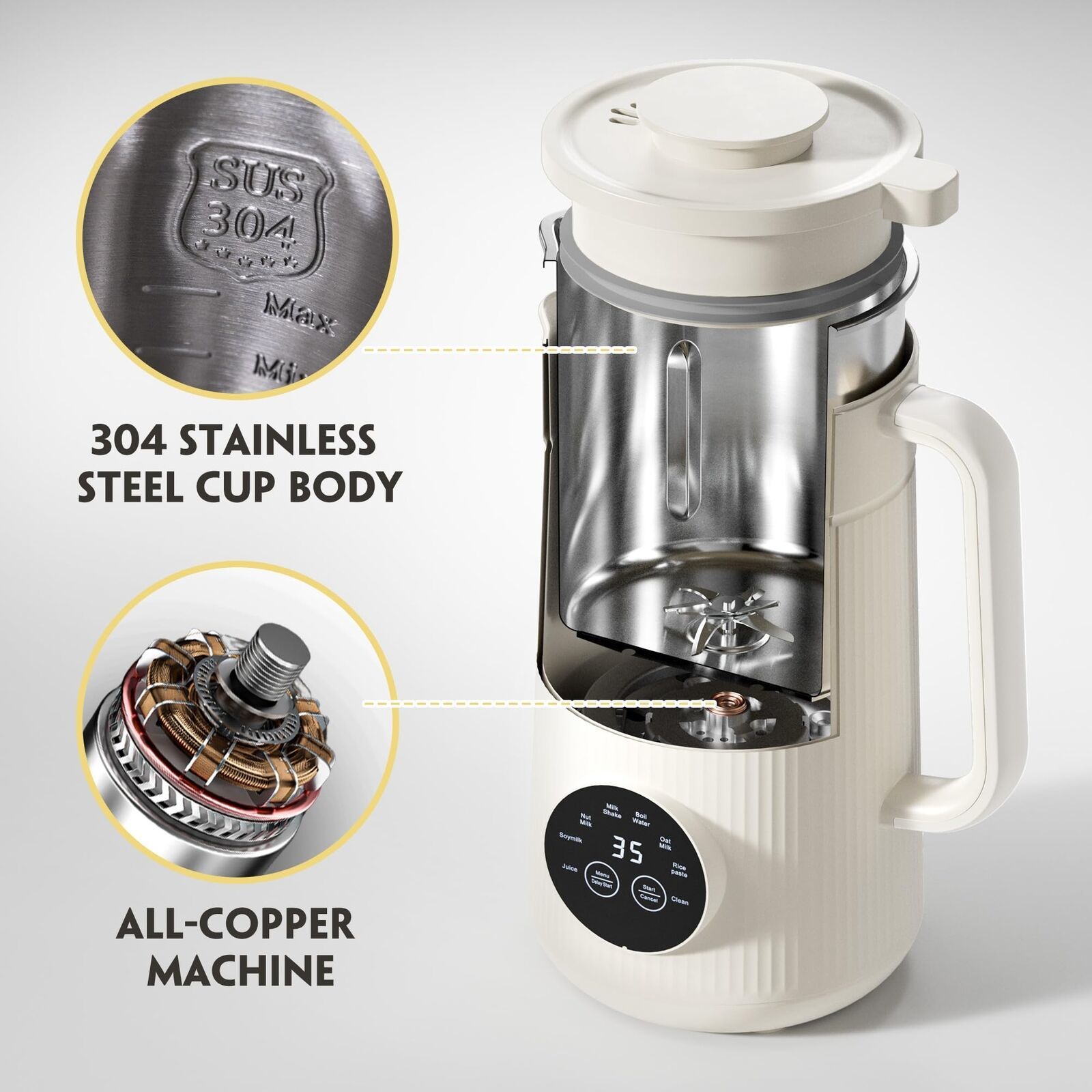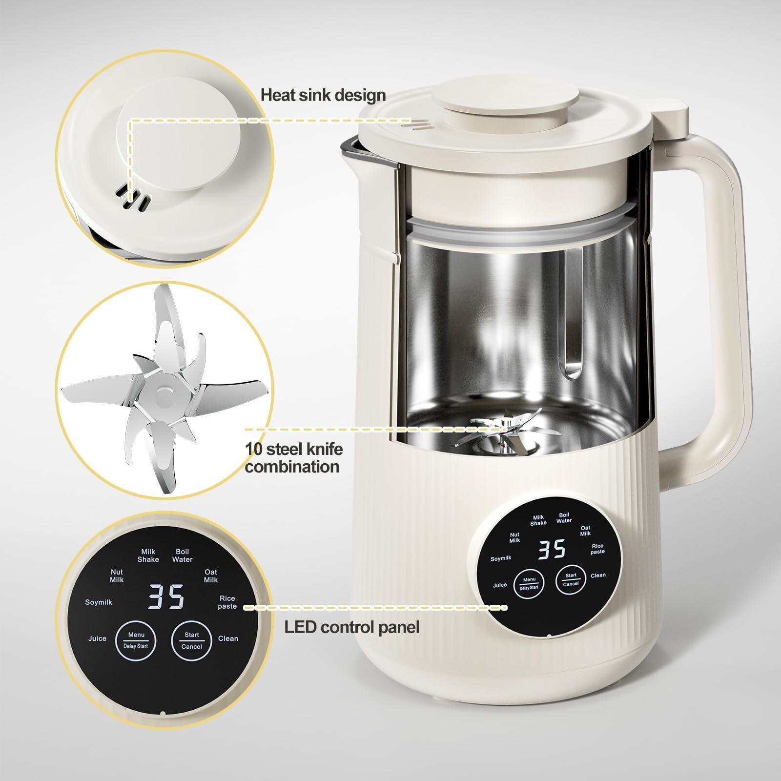 Mooye Automatic Nut Milk Maker Machine, 35oz/1000ml Multi-Functional Soybean Milk Machine with 10 Blades, Plant-Based, Oat, Almond, Dairy Free Beverages with 12h Timer, Auto-clean, Keep Warm 2h