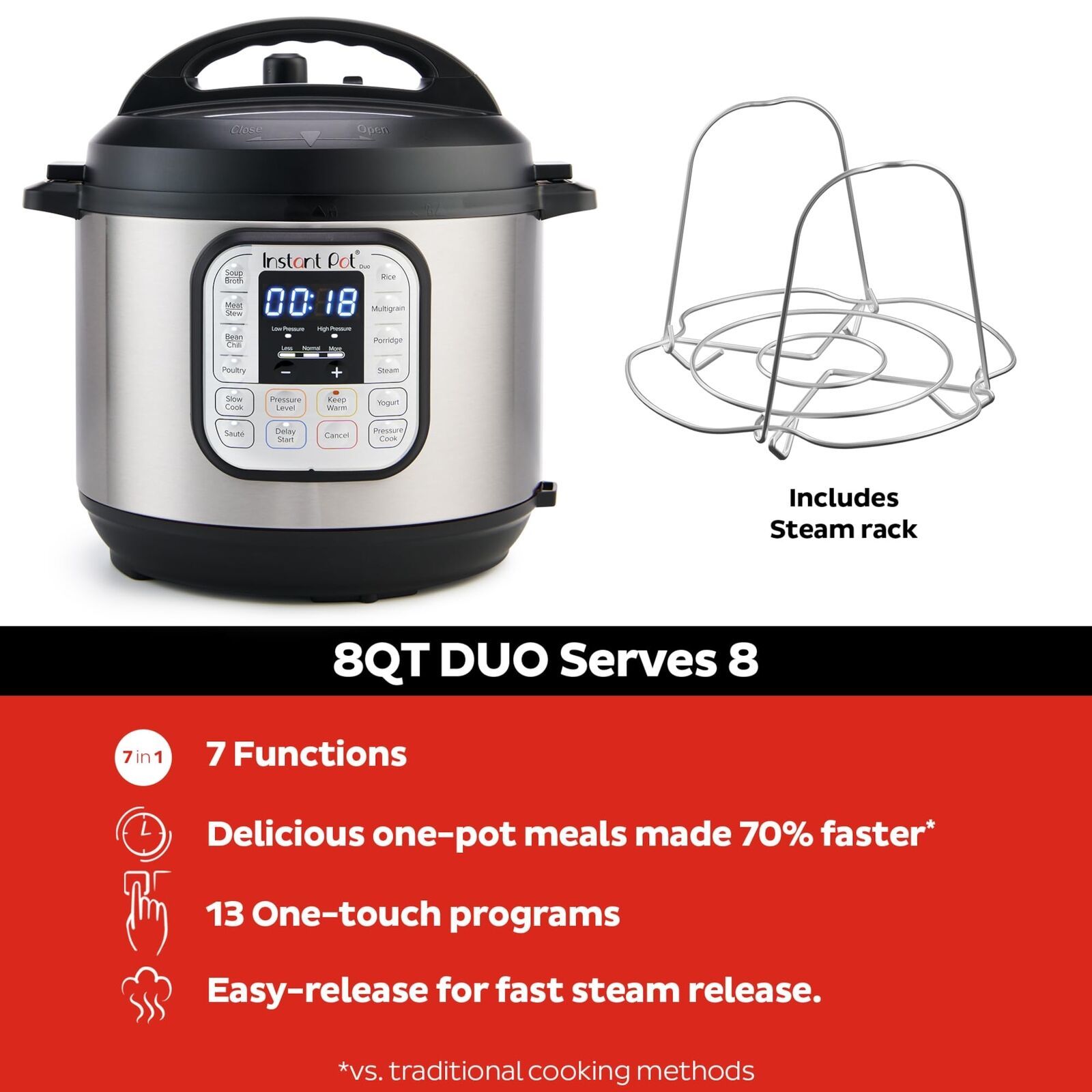 Instant Pot Duo 7-in-1 Electric Pressure Cooker, Slow Cooker, Rice Cooker, Steamer, Saute, Yogurt Maker, Warmer Sterilizer, Includes App With Over 800 Recipes, Stainless Steel, 8 Quart