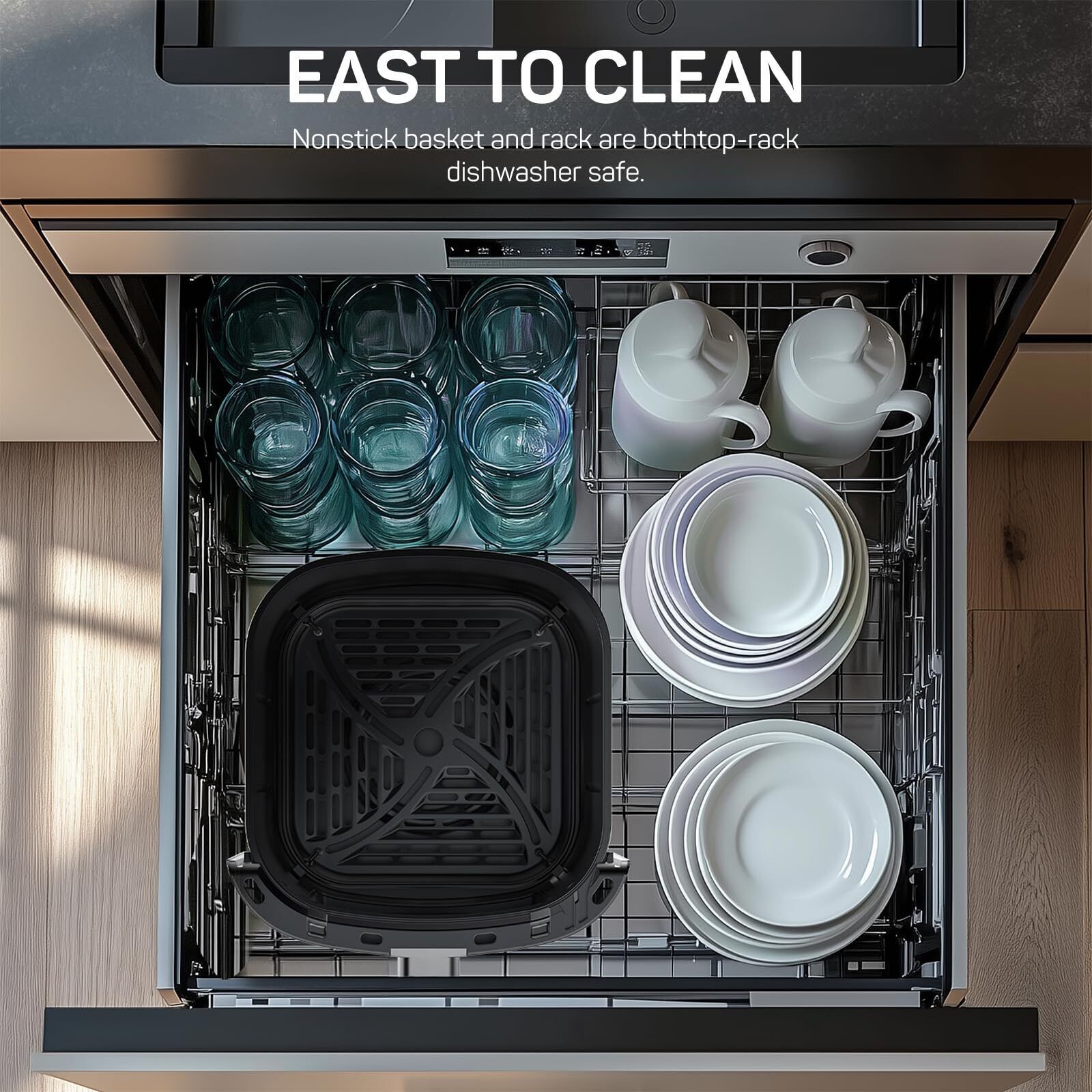 ???? ????????? ???????: With advanced rapid air circulation technology, this air fryer allows you to prepare a full meal quickly. Perfect for making crispy fries, roasted chicken wings, and more, even on busy days. ??-??-? ?????????? ???????????: It features 12 cooking modes, including Air Fry, Roast, Bake, Reheat, Dehydrate, Steam, and more. Easily prepare chicken, seafood, vegetables, custard tarts, wings, and fries with a single appliance, replacing your microwave and steamer. ?-?? ???????? ??????? ??????: With a 6-quart large capacity, this air fryer is perfect for family meals. It's designed to maximize cooking space while maintaining a compact footprint, keeping your kitchen organized. ????????? ?????? ???? ??% ???? ???: Enjoy your favorite fried foods with up to 95% less oil, while maintaining the crispy texture you love. Perfect for guilt-free meals like fried chicken, fries, and more. ?????-?? ??????? ??????: The convenient viewing window lets you monitor your cooking progress without opening the fryer, ensuring consistent temperatures and perfectly crispy results every time.