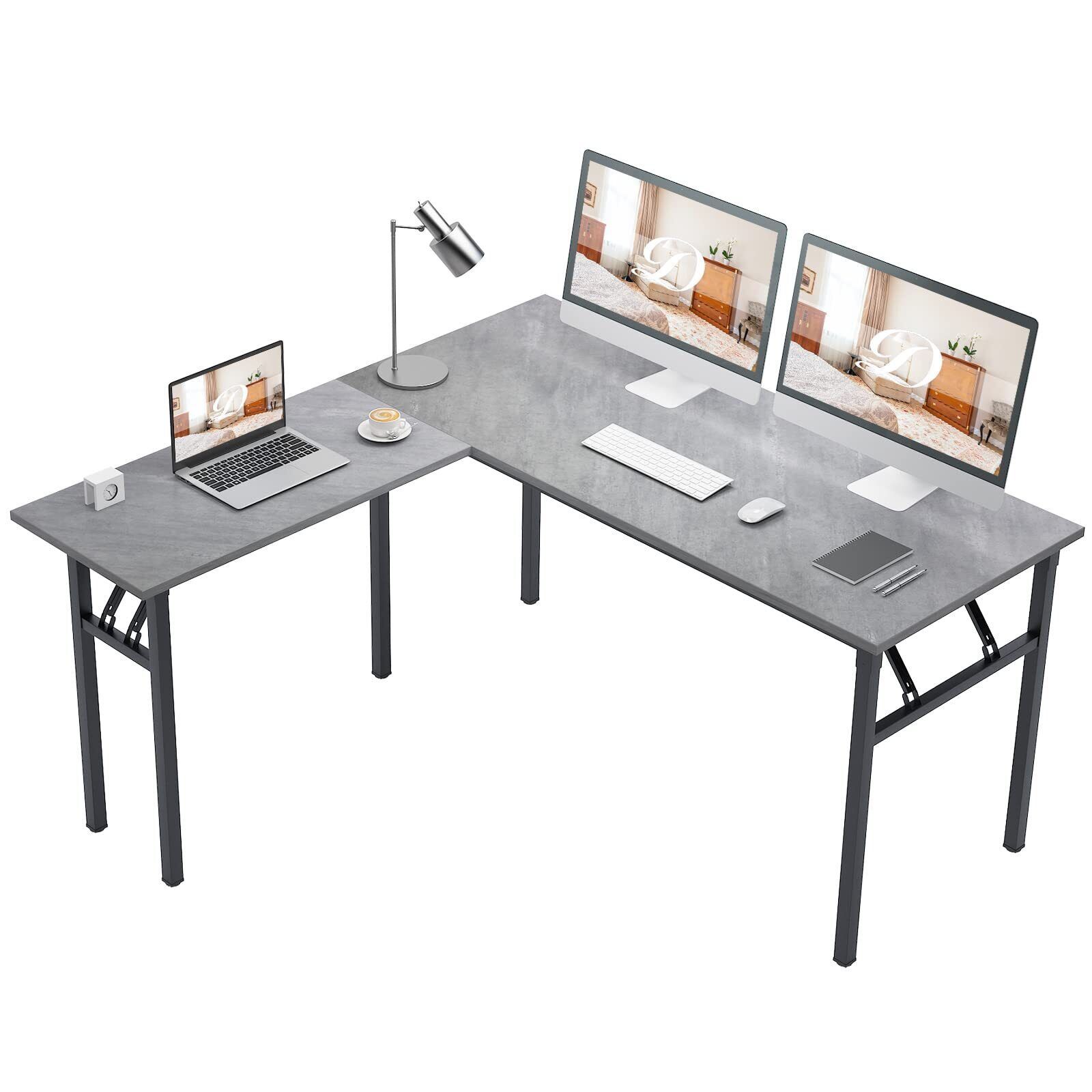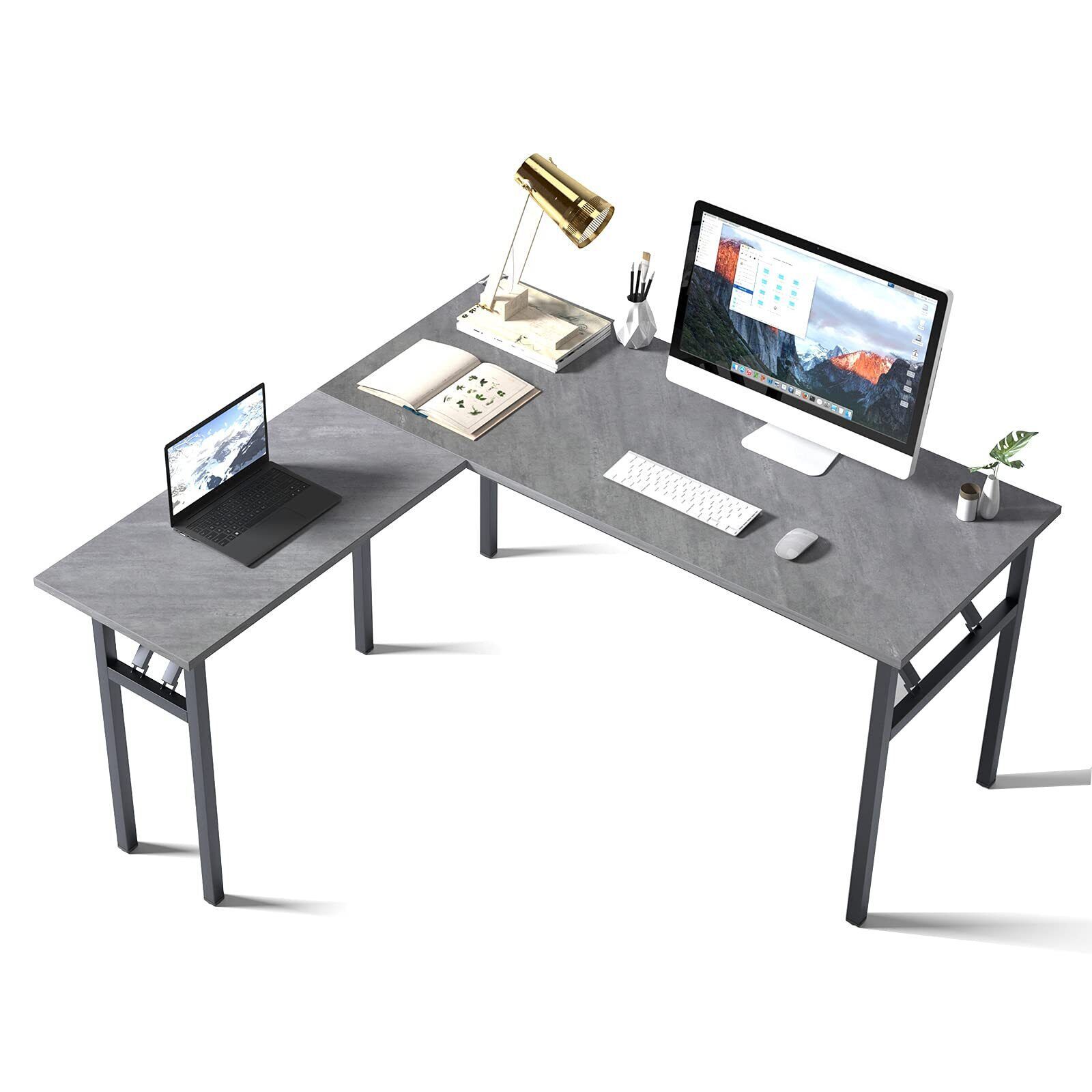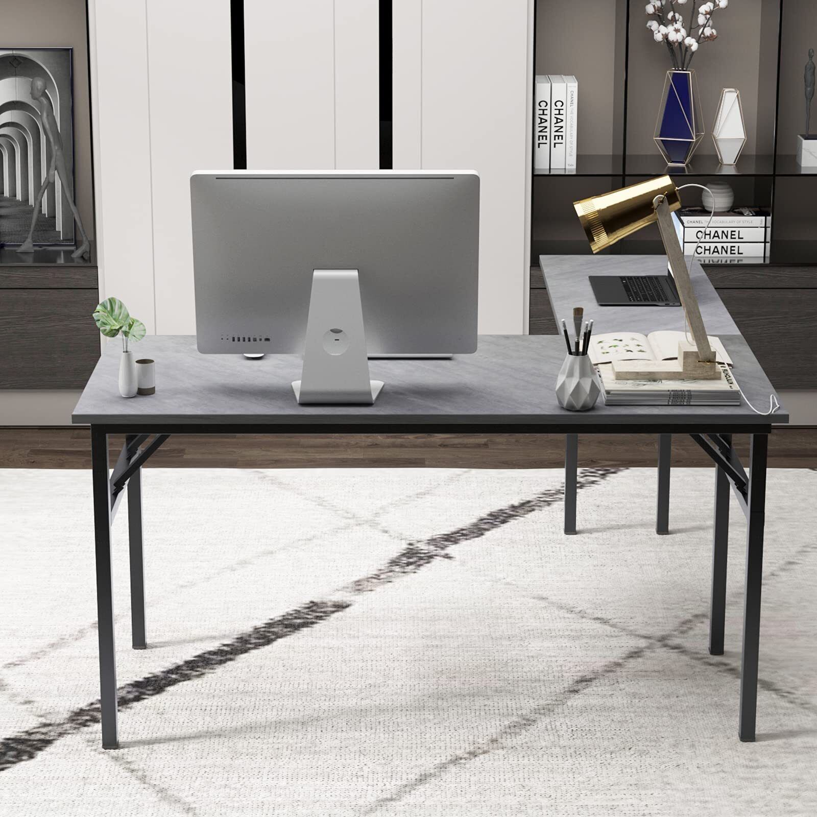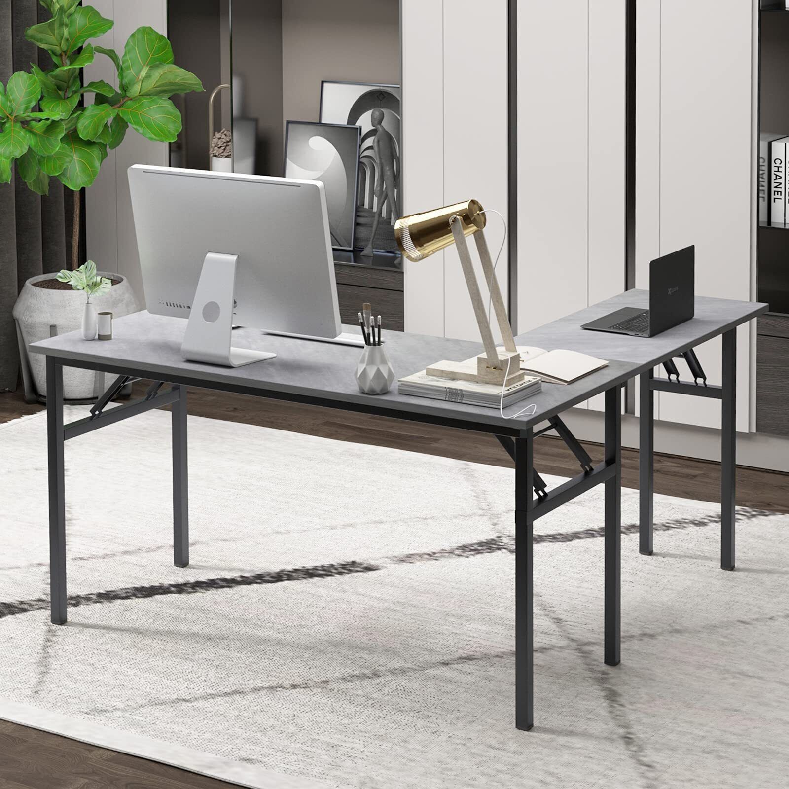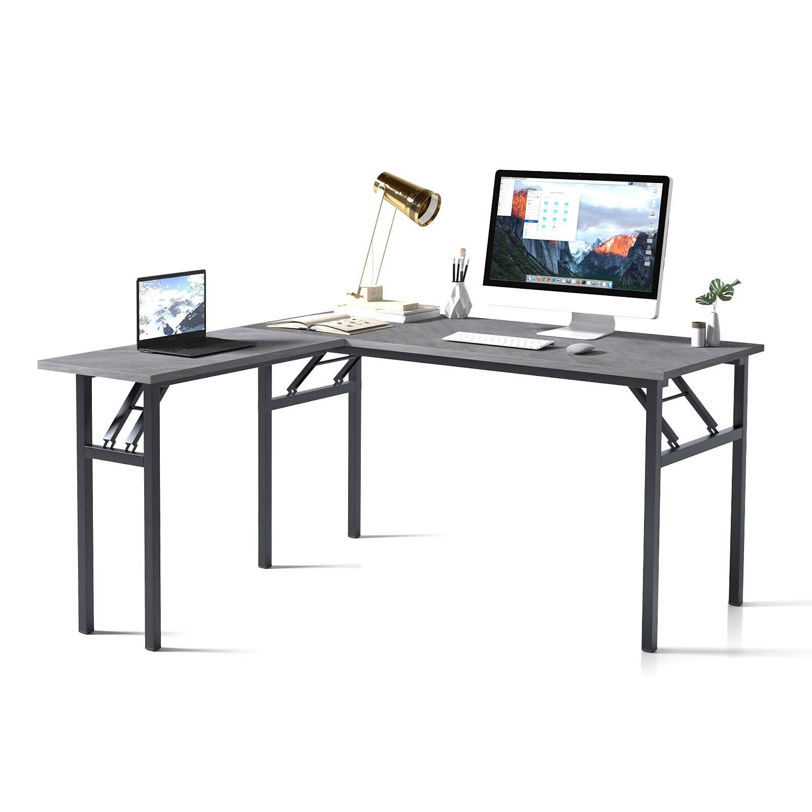 DlandHome L-Shaped Desk Large Corner Desk Folding Table Computer Desk Home Office Table Computer Workstation, Grey