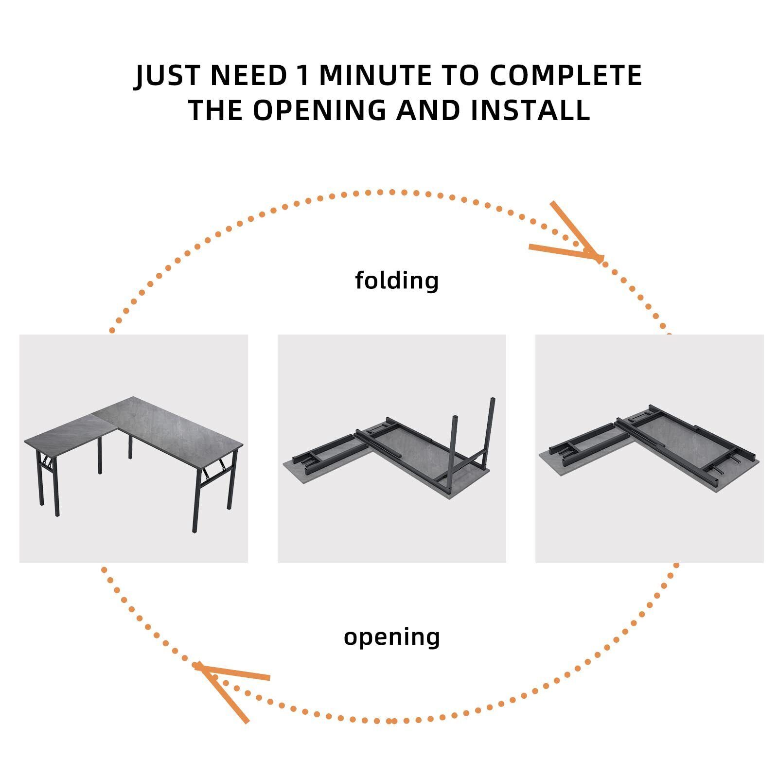 ?Dimensions?- 55.1+55.1L * 23.6+15.7W * 29.5H inch (140+140L * 60+40W * 75H cm), hand measured; This folding table package weights about 53 lbs (24 kg); Maximum load capacity 300 lbs (136 kg) ?Large Storage Space?- This L-Shaped desk is spliced by 2 part. it is very spacious, easy to place different office supplies. Completely solve the problem of storage and arrange to ensure enough desktop space ?Humanity Science Design?- Whether you are left or right-hand, this desk can be Two-way stitching to meet the needs of different directions. This corner desk is modern simple fashion, Half-Installed, can be open and folded in a few seconds ?Health High Quality?- The computer desk plate: Solid wood particle pressing, E1 grade environmental wood without any industrial glue, and 0 formaldehyde release. Metal Frame: Utilizes heavy-duty and powder-coated metal materials, which ensures stability and durability ?24 Hour Reply?- If there are any questions about the folding desk, please feel free to contact us, we will reply you in 24 hours.