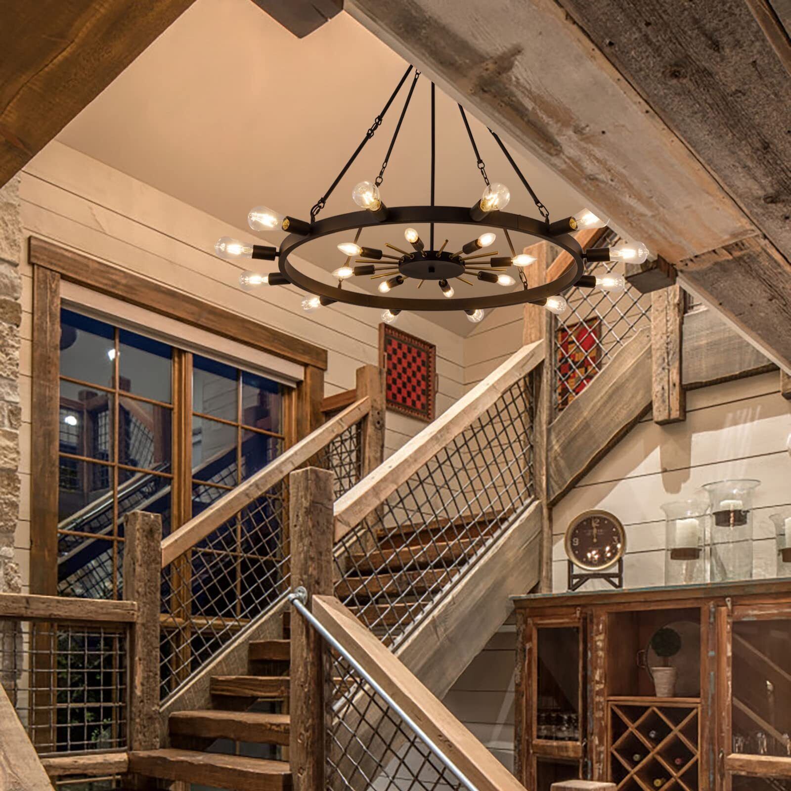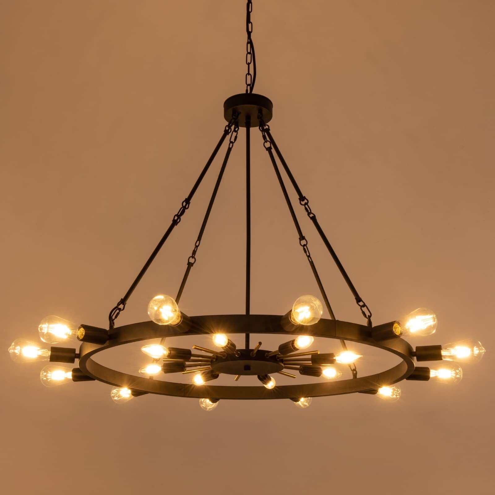 Wellmet 42inch Large Black&Gold Wagon Wheel Chandelier 2-Tier 20-Light Farmho...