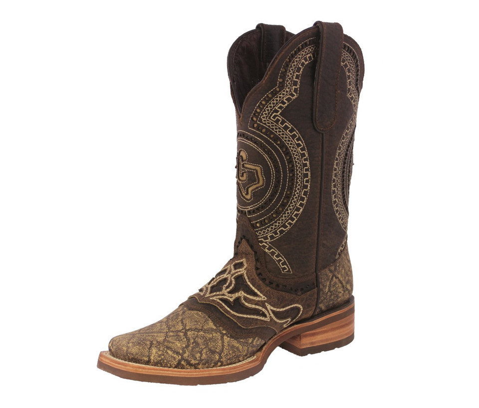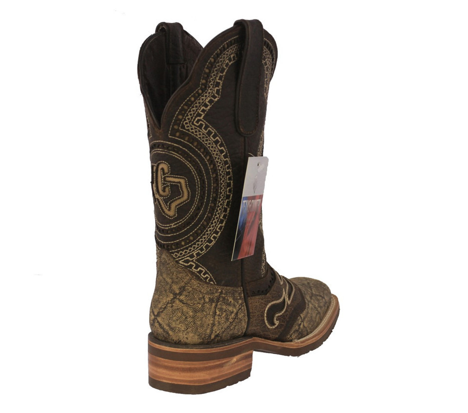 Mens Cowboy Boots Rodeo Dress Rustic Sand Elephant Print Overlay Square Size 7