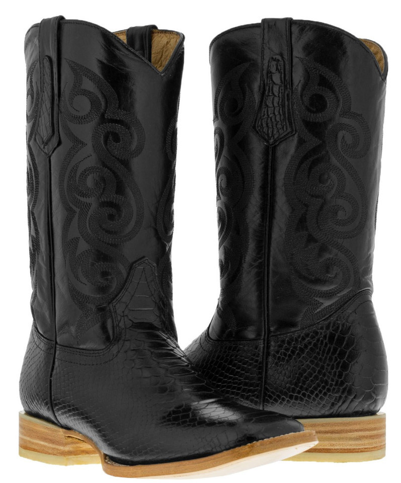 Mens Cowboy Boots Rodeo Dress Black Snake Print Square Botas Hombre Size 12.5
