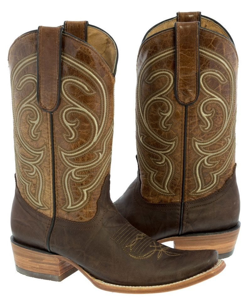 Mens Cowboy Boots Rodeo Dress Cognac Solid Embroidered Botas Hombre Size 10