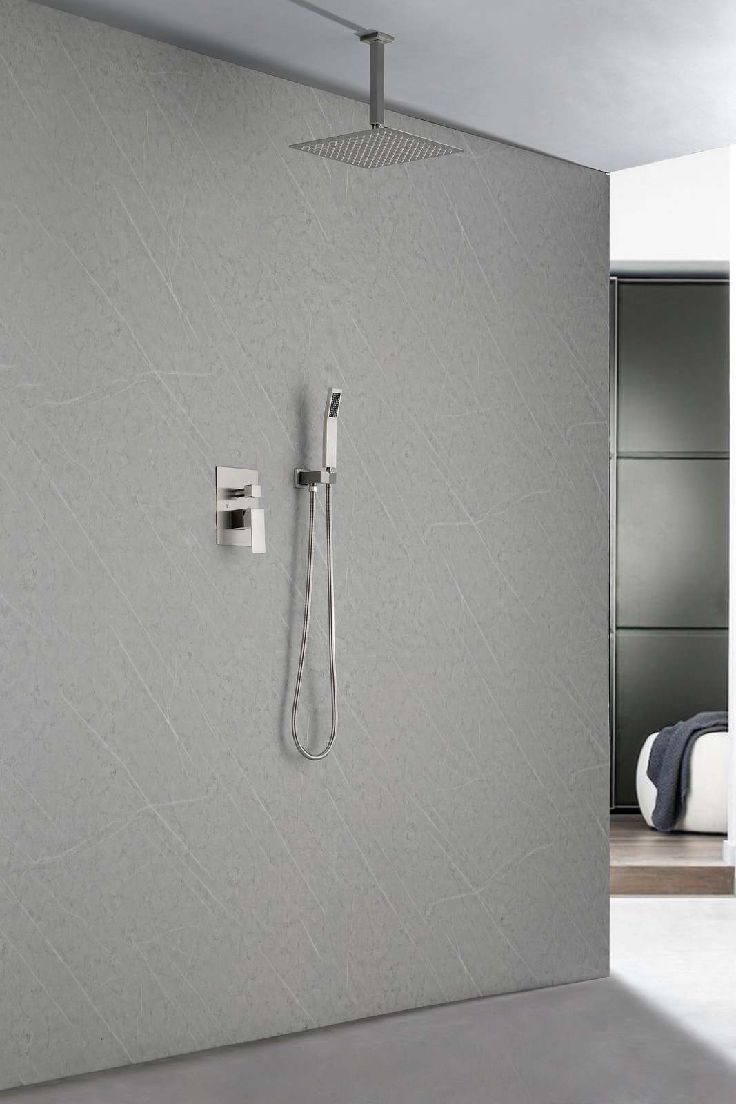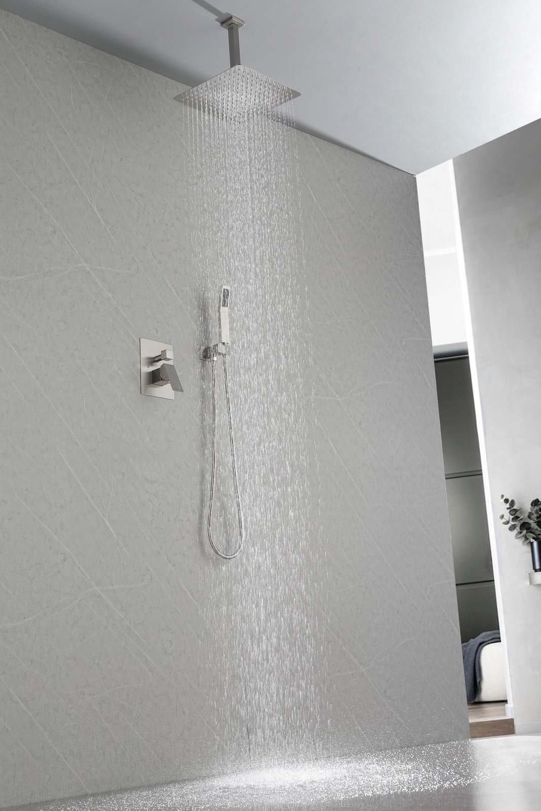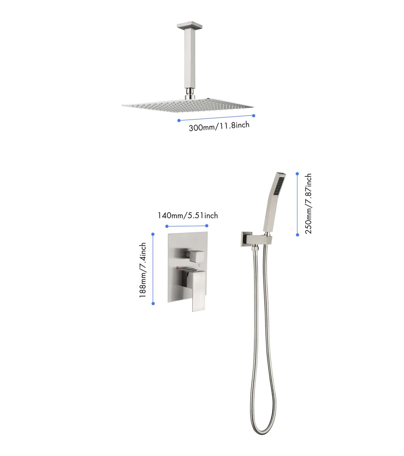Include: inch rain shower head, handheld shower head 1.5M shower hose,shower holder, water control valve,install hardware include.