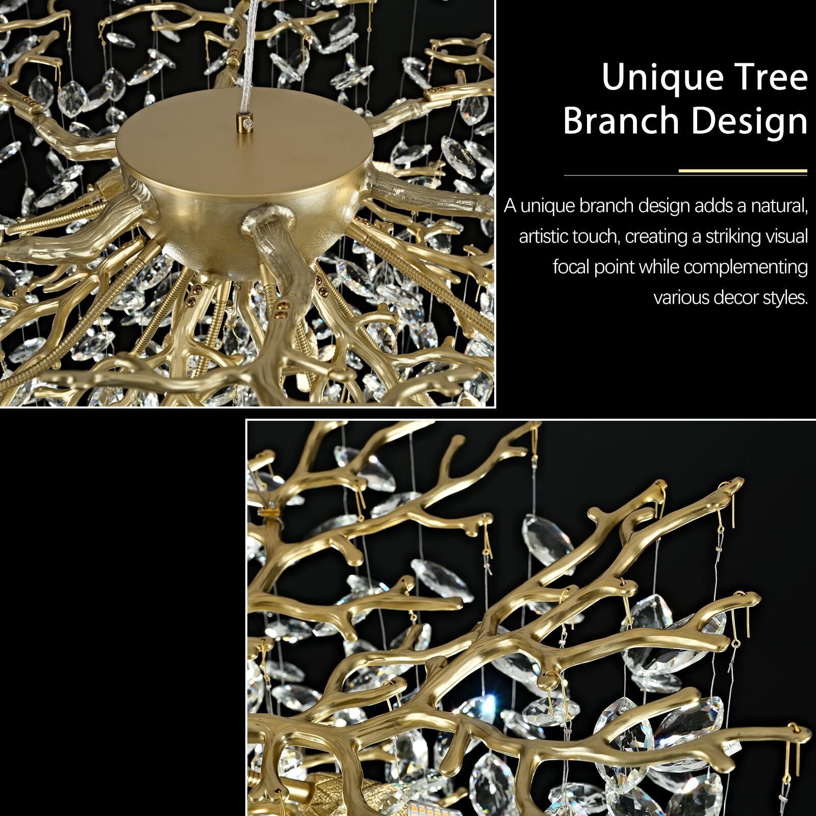 BMNJYW 40 inch Crystal Chandelier for Dining Room, Round Gold Tree Branches Chandeliers, Top K9 Crystal Chandelier, Modern Chandeliers for Kitchen,Foyer Entryway,Luxury Adjustable Hanging Chandelier