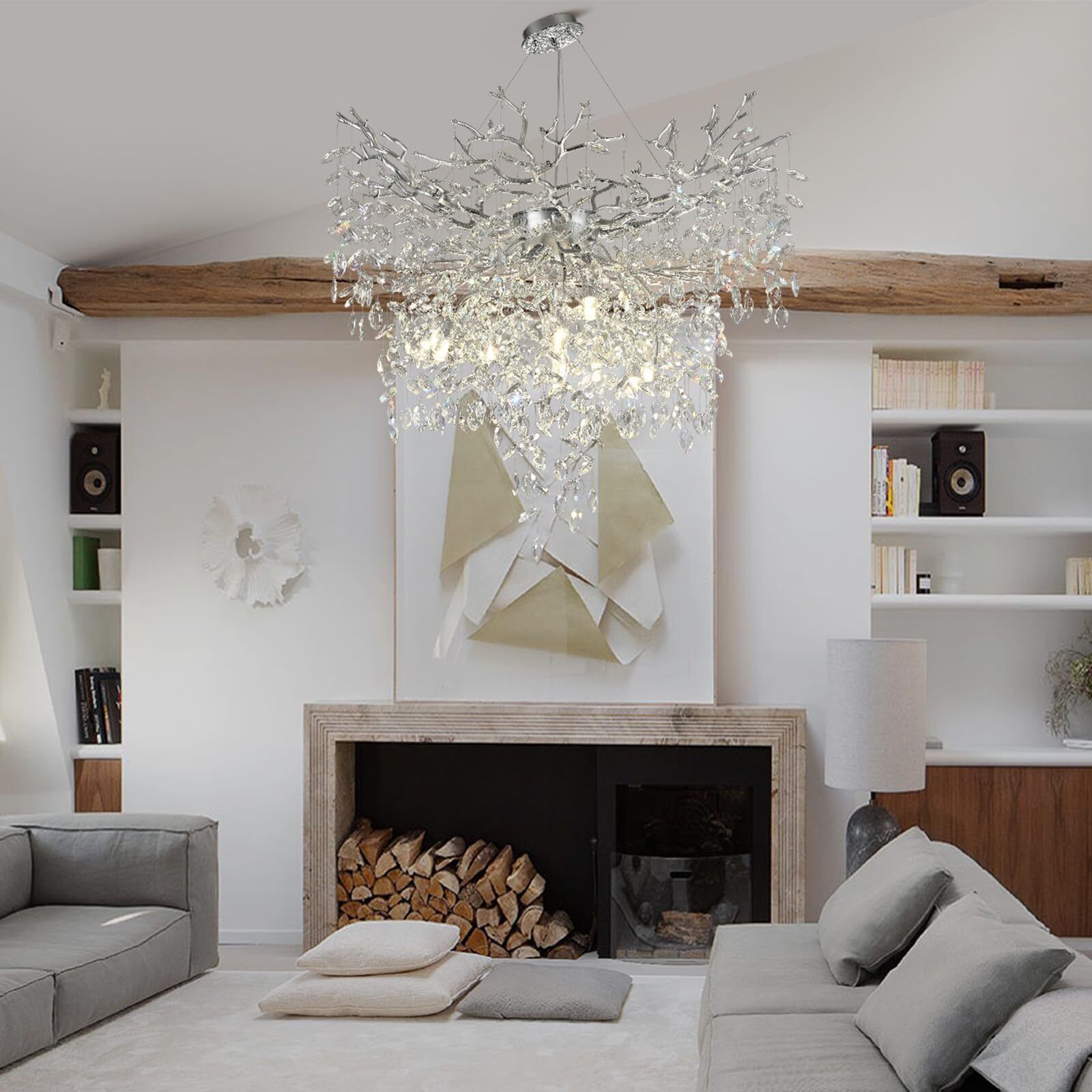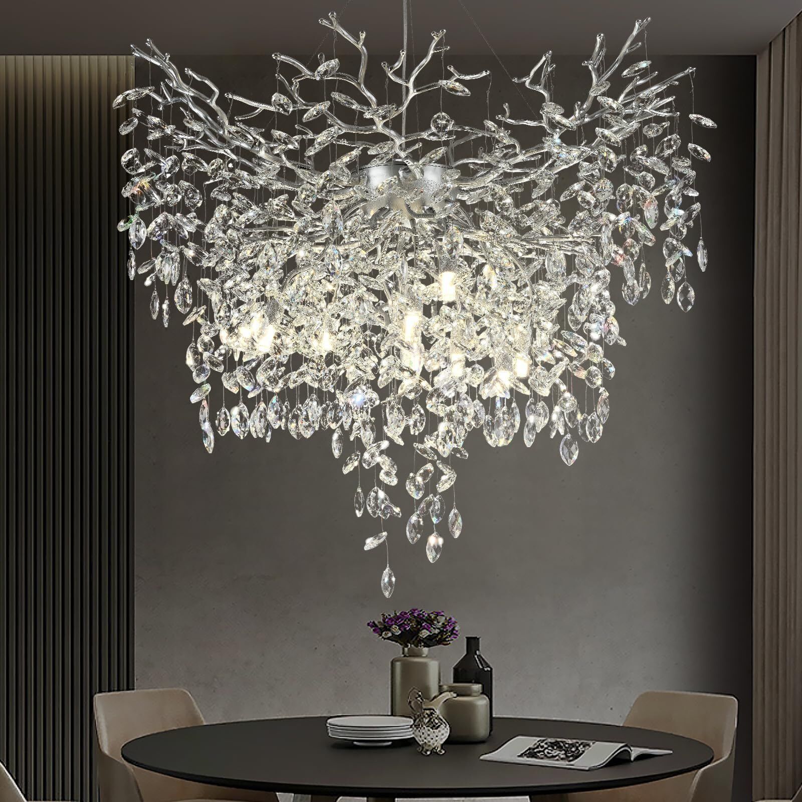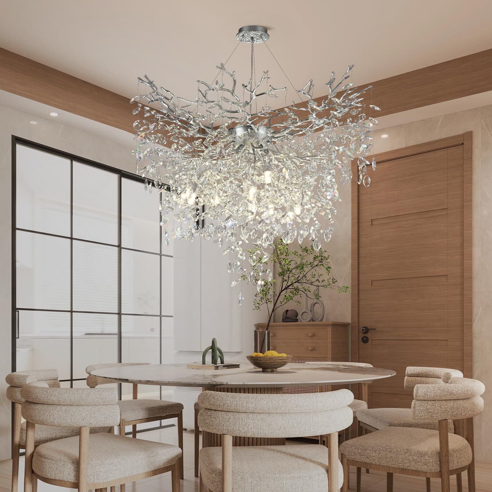 BMNJYW 40 inch Crystal Chandelier for Dining Room Round Silver Tree Branches ...
