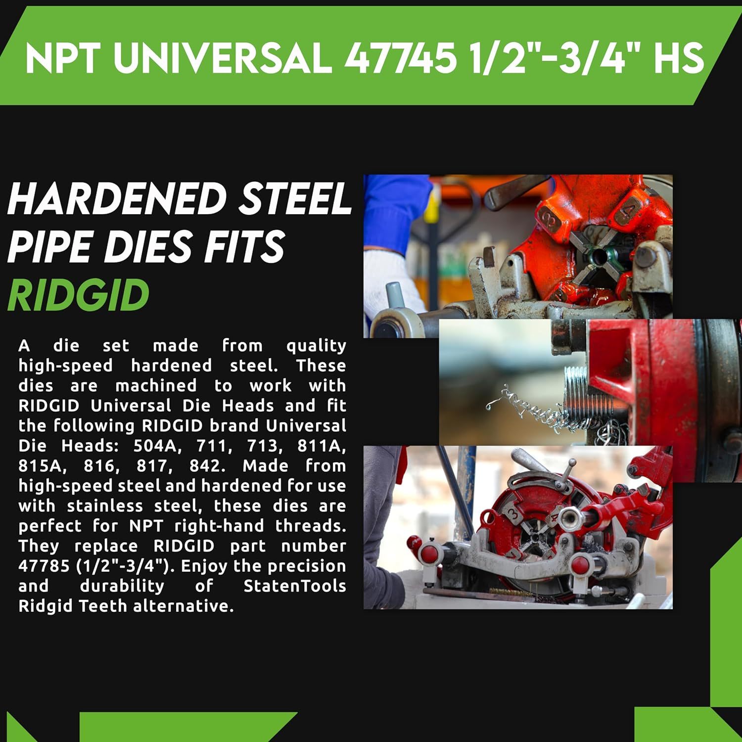 Npt Universal 47770 1"-2" Hs Hardened Steel Pipe Dies Fits Ridgid, 815A Die Head