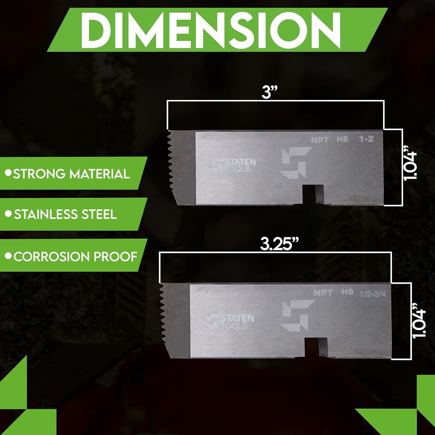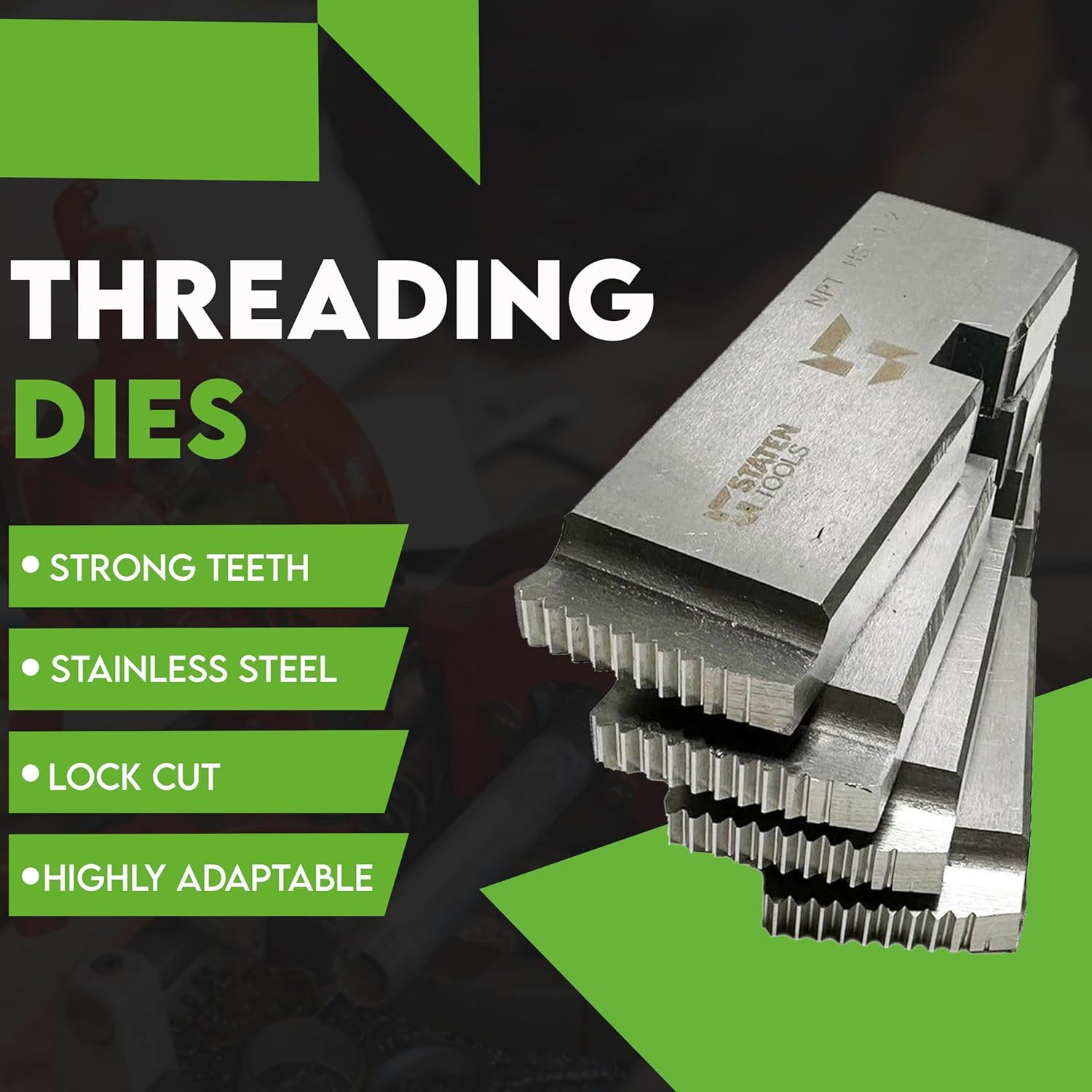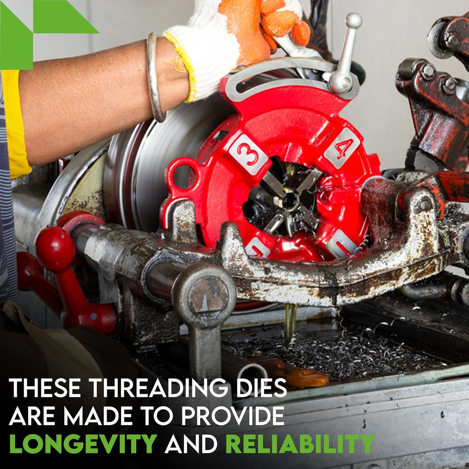 Engineered for stainless steel rigid dies fit head types 504A, 711, 713,811A,815A, 816, 817, and 842. With a capacity of 1 to 2 inches, these threading dies are made to provide longevity and reliability. The rigid die grinder set is highly adaptable and resists every type of weather work environment. With 11-1/2 TPR this pipe threader die set is very ideal for construction sites, factories plants. We guarantee a lifelong service for this rigid die set and compensate for all defects deficiency.