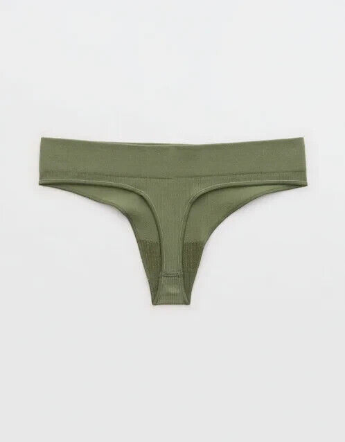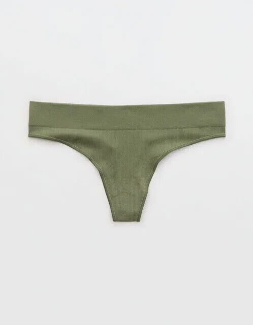 American Eagle Aerie Seamless Thong Panties SMALL Solid Green Ribbed New