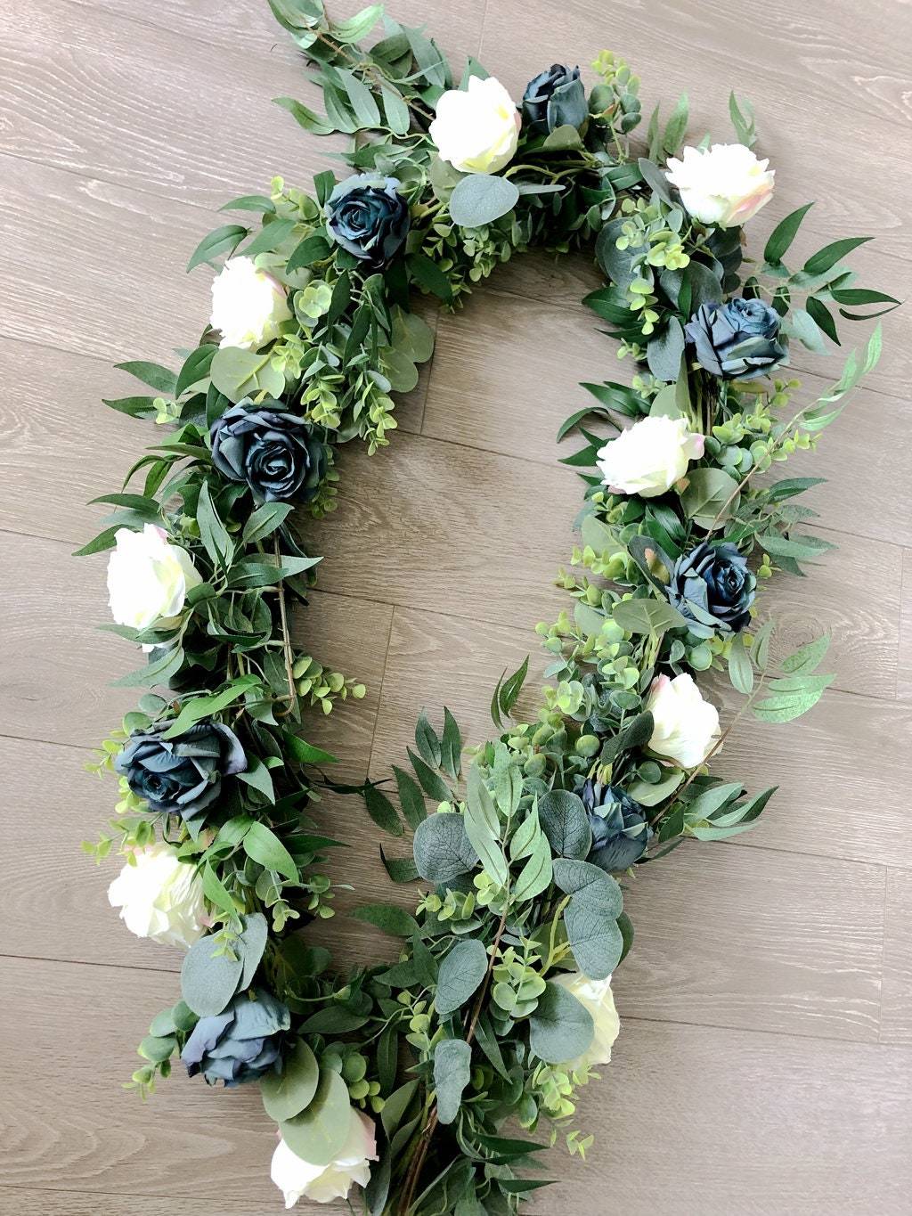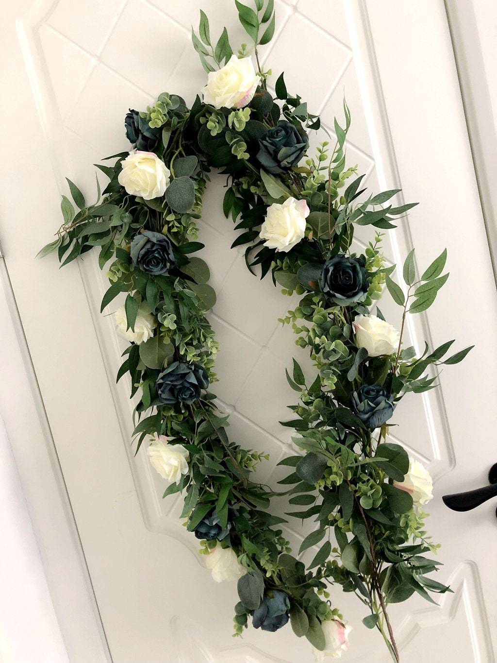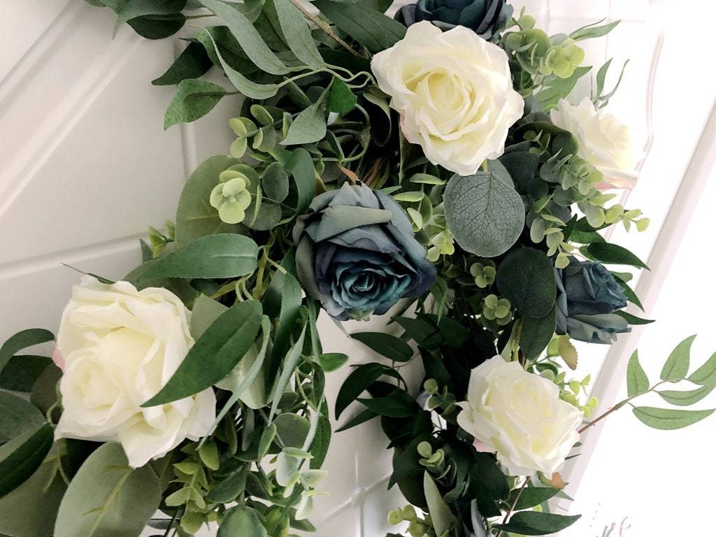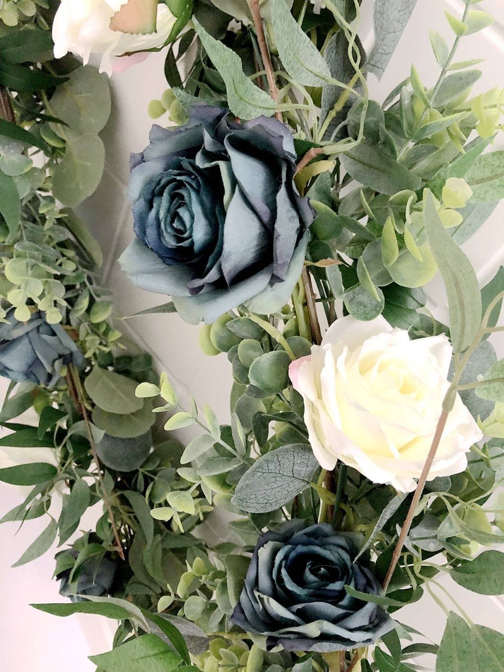 6.5 feet artificial blue white rose flower Eucalyptus Garland, Wedding garland