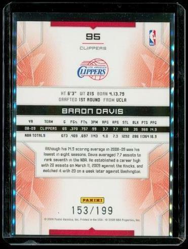 2009-10 PANINI LIMITED Basketball Card #95 BARON DAVIS LA Clippers LE 153/199