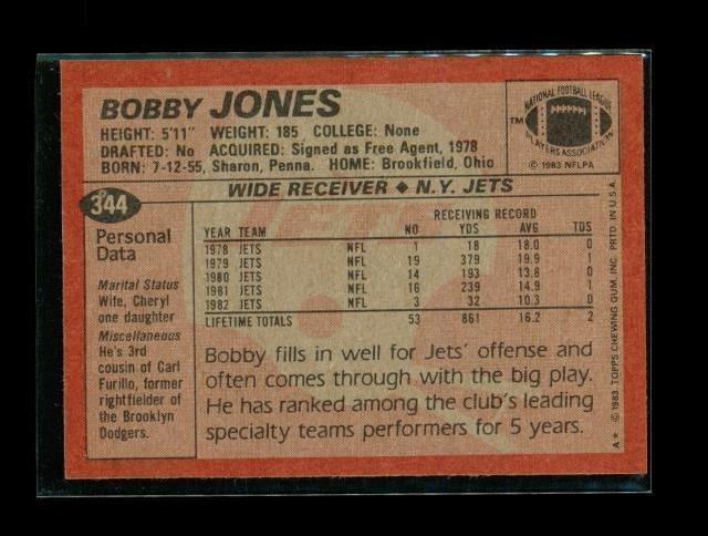 Vintage 1983 TOPPS Football Trading Card #344 BOBBY JONES New York Jets