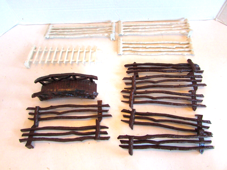 Vtg Louis Marx Bar M Ranch Split Rail Fence Sections White & Brown Bridge M34