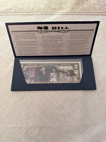 This uncirculated $2 Bill is Genuine Authentic Legal Tender of the United States, which has been enhanced with beautiful colorized images of Dale Earnhardt, Jr. with National Guard as sponsor of car No. 88. The full colorized images are accomplished through a revolutionary new authentic genuine colorization process pioneered by The Merrick Mint. Included is a Certificate of Authenticity to guaranty that your bills are authentic and recognized by every monetary authority around the world, and assuring its Collector Edition status. Only genuine Legal Tender $2 United States Bills are used for this unique colorization process. Each $2 Bill is in FRESH, CRISP, UNCIRCULATED condition, and was directly removed from untouched wrapped Federal Reserve sealed packs. Former U.S. President Thomas Jefferson is featured on the obverse of the note, along with the special colorization overlay. The Signing of the Declaration of Independence by John Trumbull is featured on the reverse. It is the only U.S. Currency note that features two Presidents, John Adams and Thomas Jefferson, and it is one of the most rarely seen BILLS in circulation and actual use.
