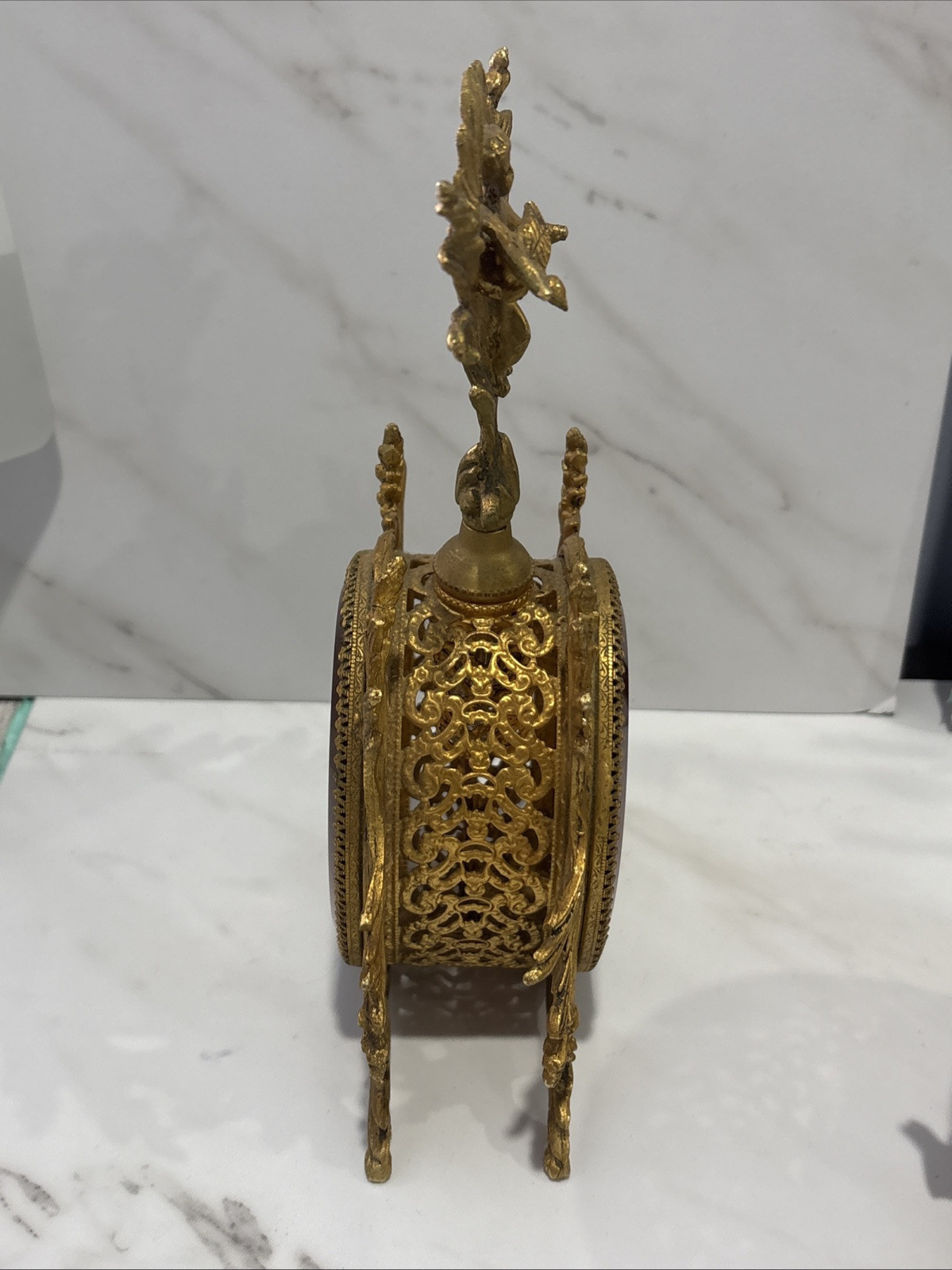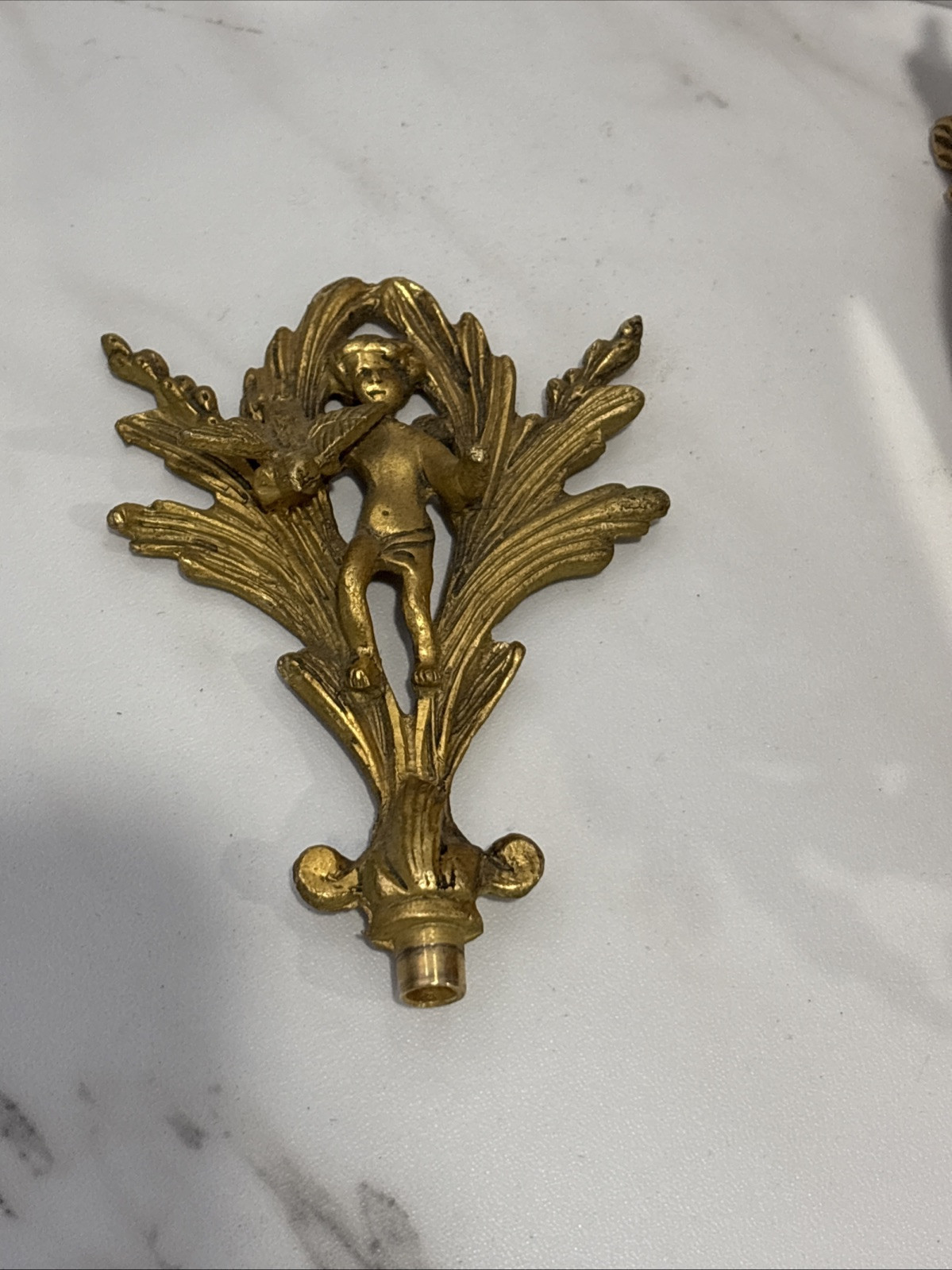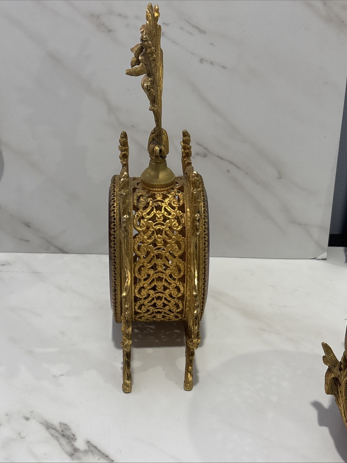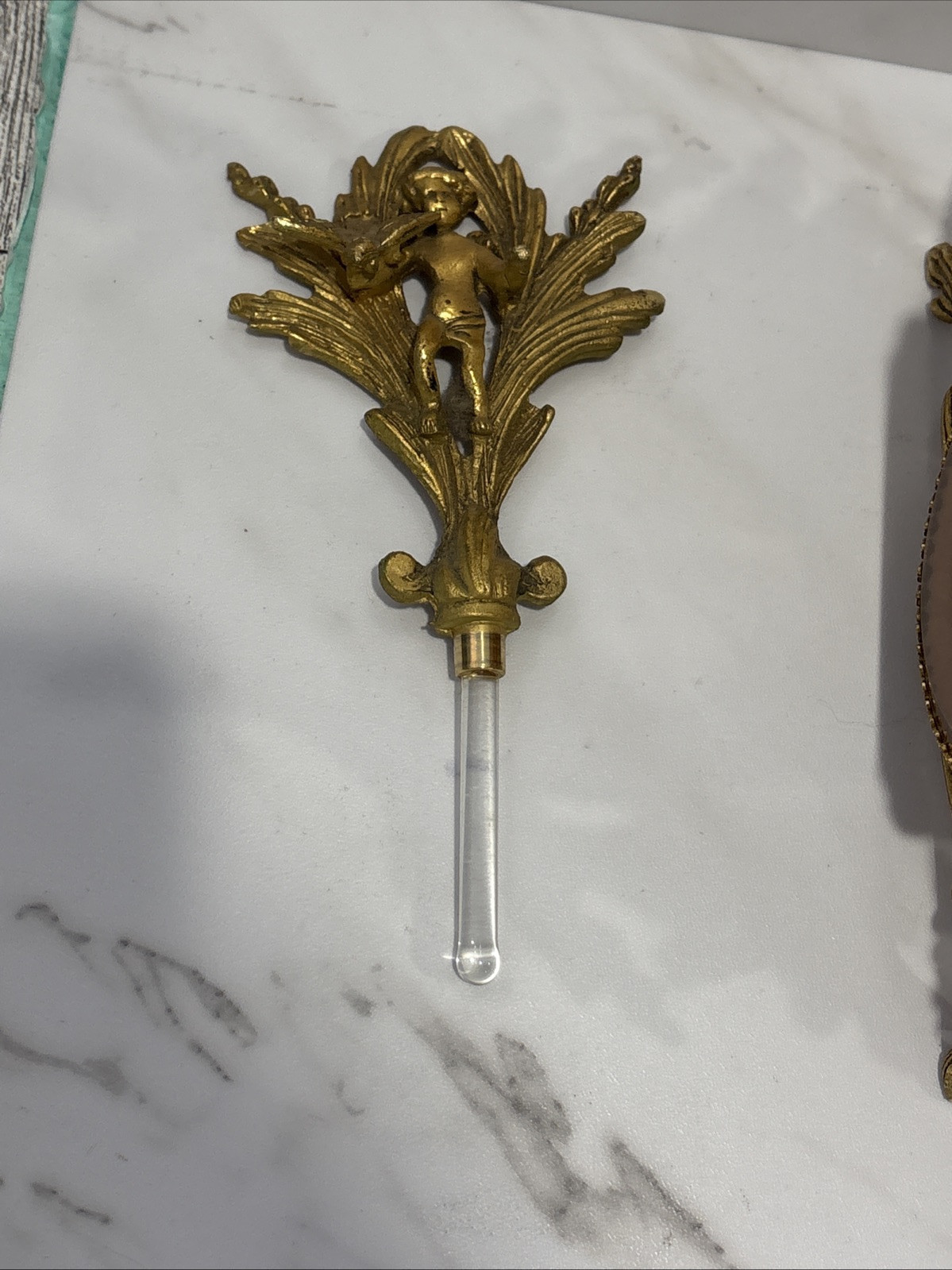 Antique Art Deco Ormolu Amber Glass Cherub (2) Perfume Bottle (1) Jewelry Box Decor