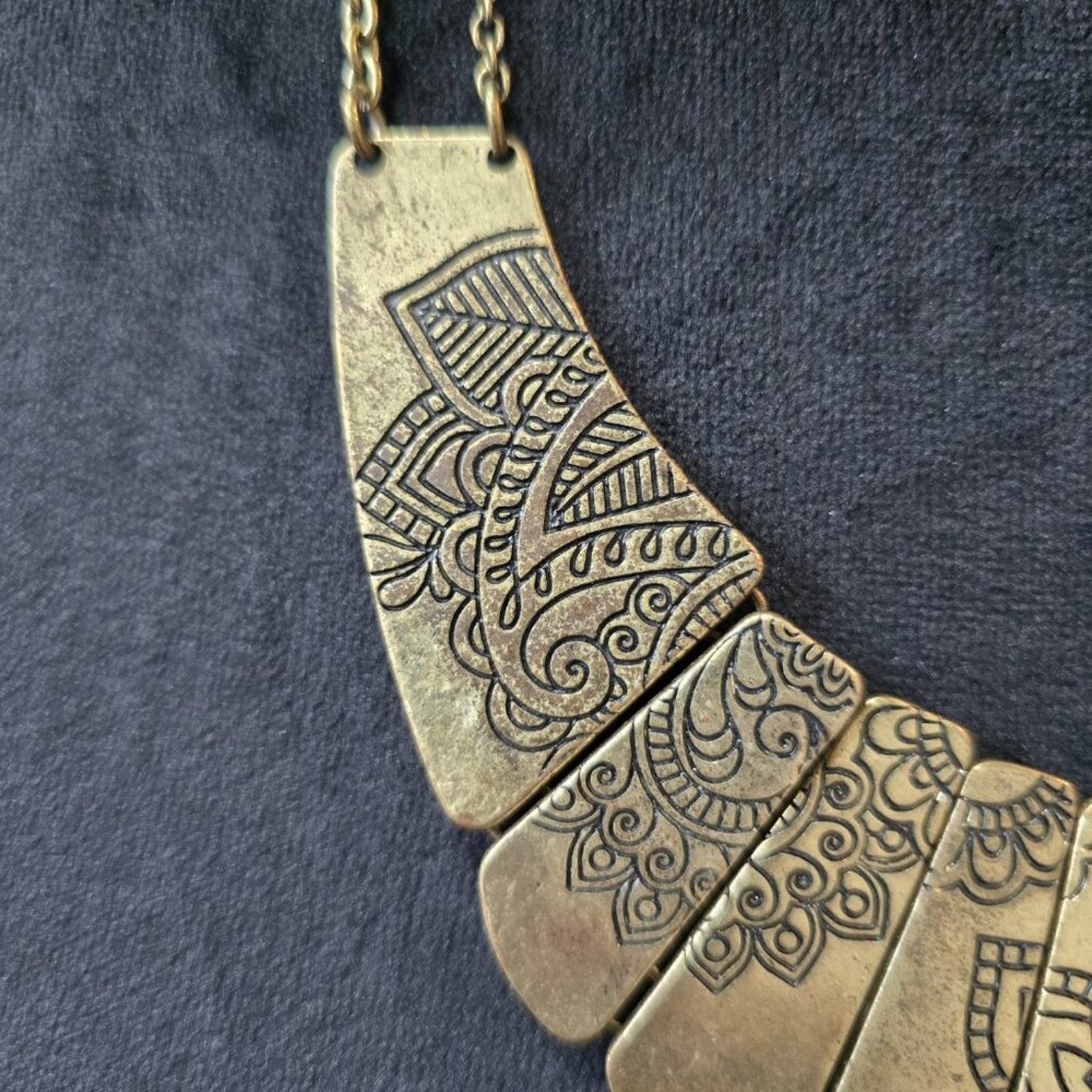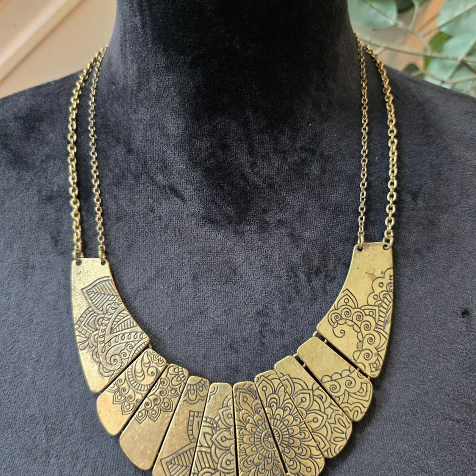 Vintage Womens Bronze Imitation Double Chained Bib Statement Necklace w/ Lobster