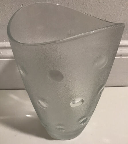 Vintage 1970s Coin Polka Dots Glass Clear Vase, Italy, 1970s.