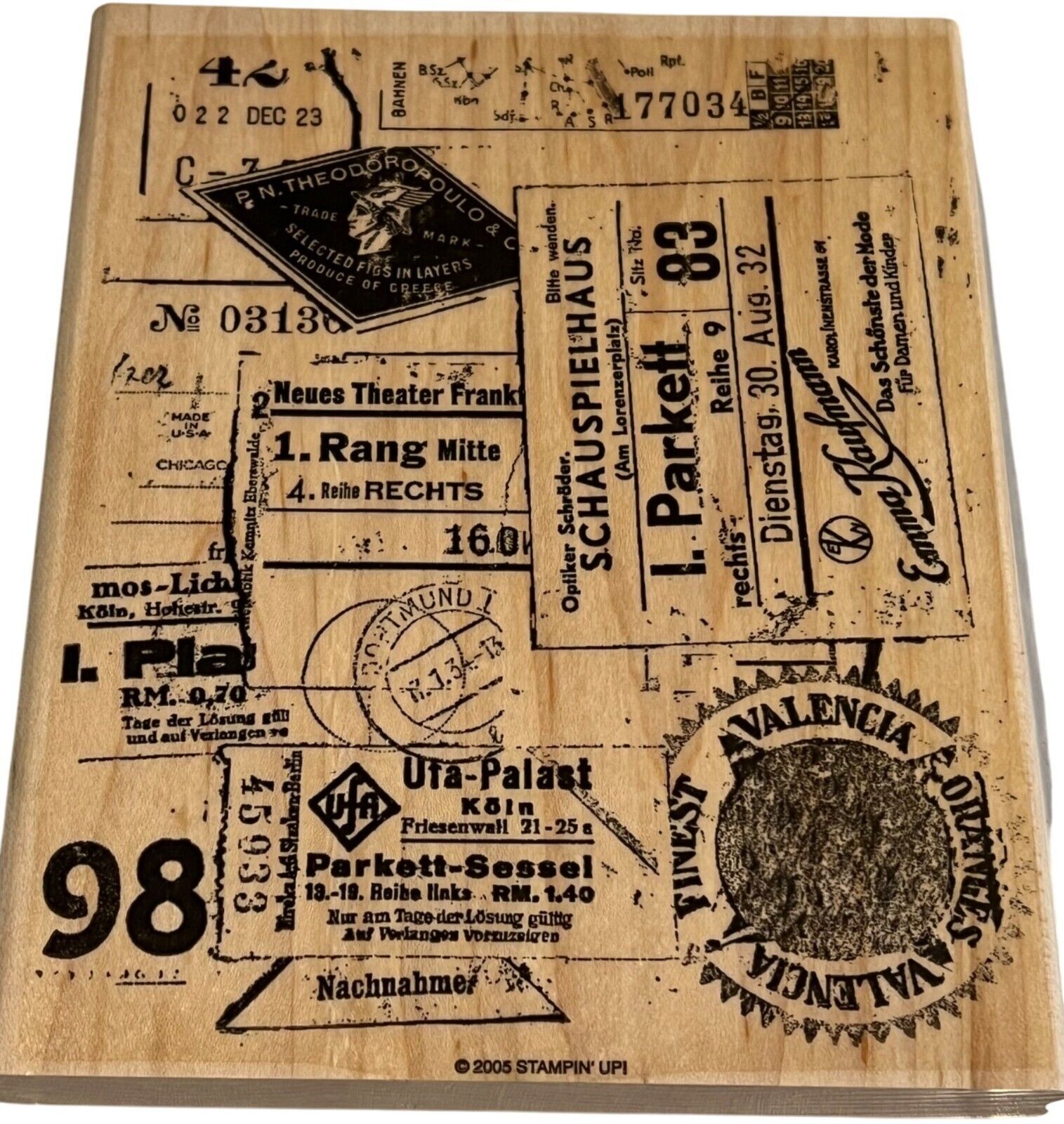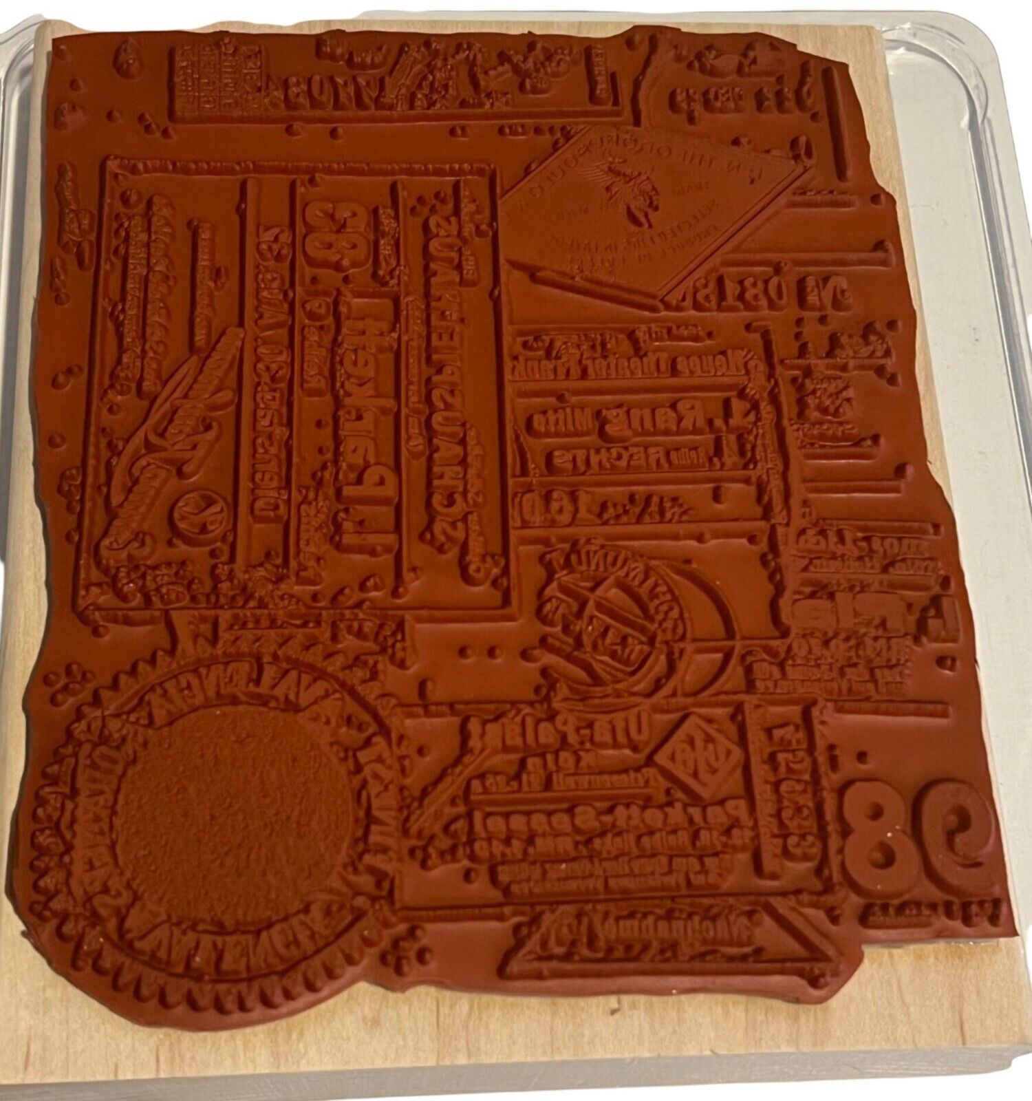 Vintage-Style Stampin Up! Ephemera Background Large Rubber Stamp Wooden Block
