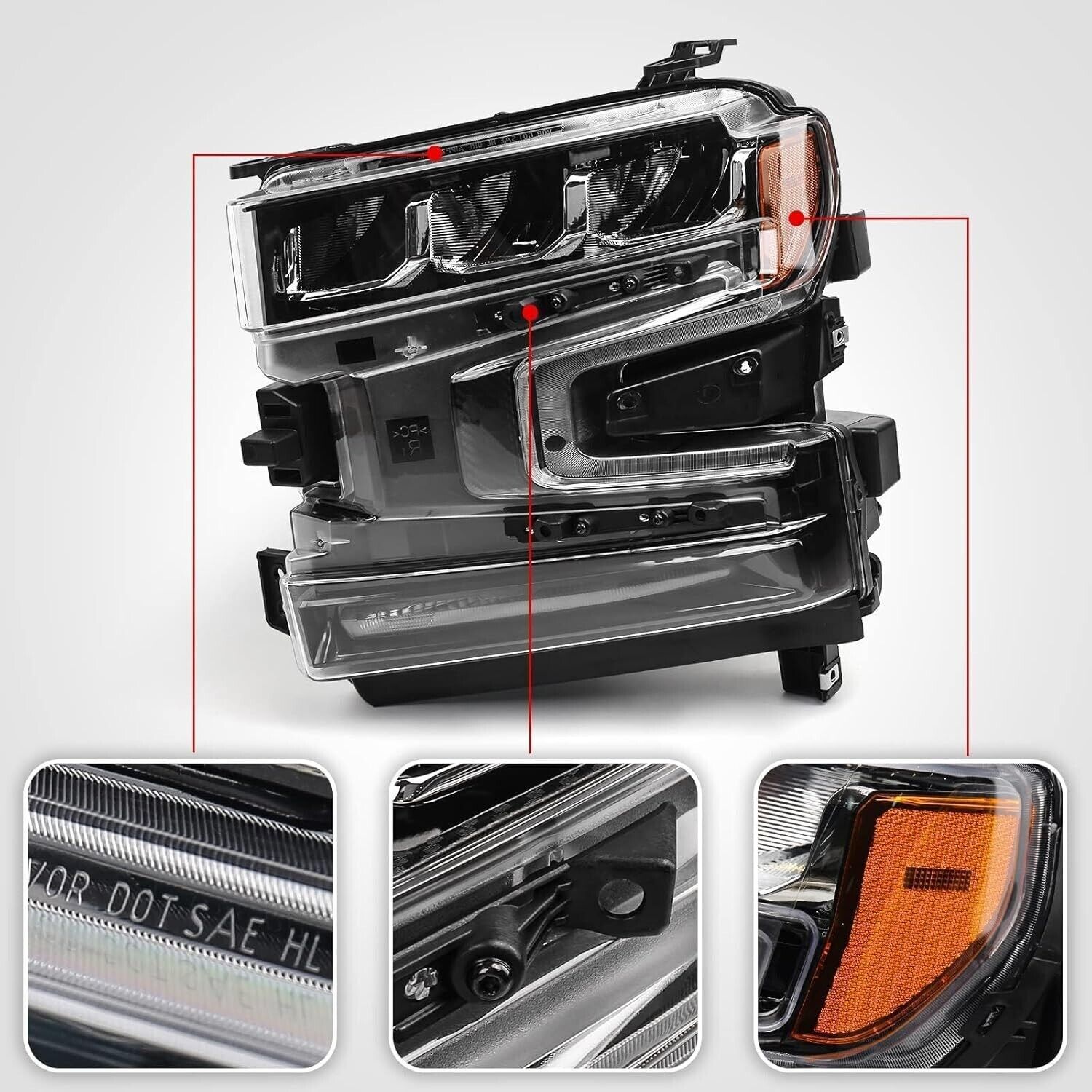 [ADAPTATION] Compatible with 2019 2020 2021 2022 Chevy Silverado 1500 (Driver Side). ONLY FIT FOR THE LED VERSION MODEL, NOT FOR HALOGEN HEADLIGHTS!!!
