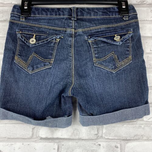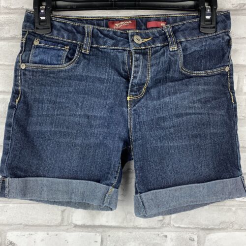 Arizona Girl's Dark Wash Midi Jean Shorts Size 14R Adjustable Waist Cuffed Hem