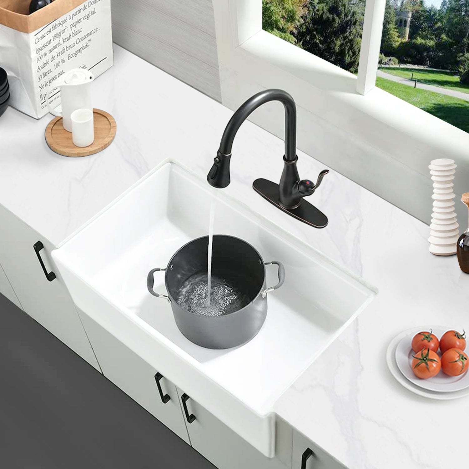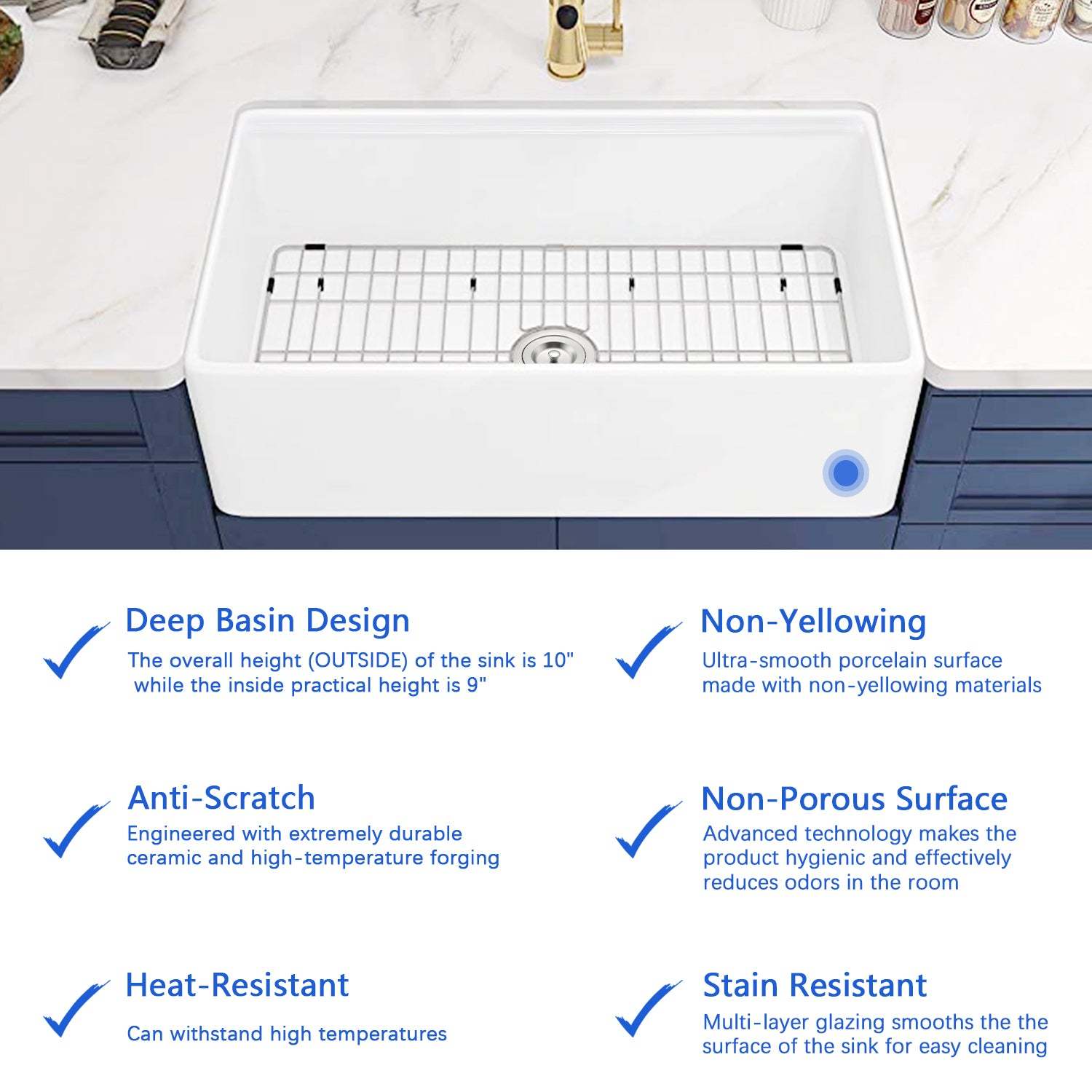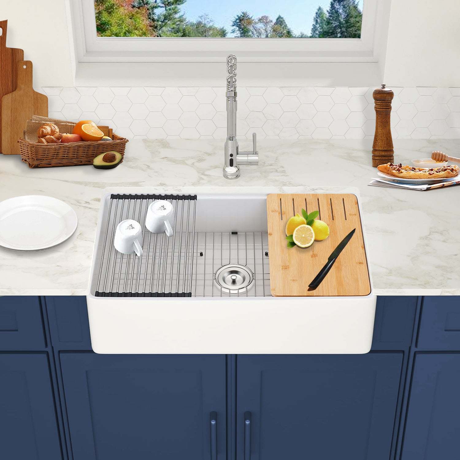 Farmhouse Fireclay Kitchen Sink: 33x20" w/ Accs