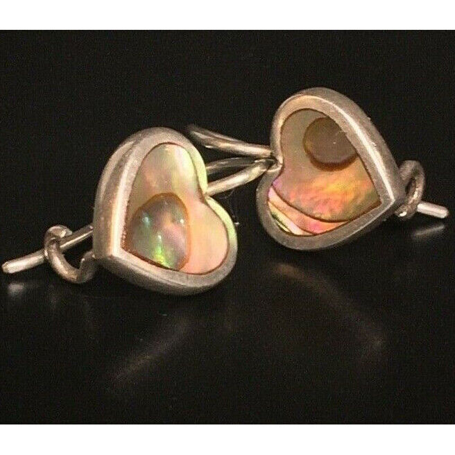 SWEET 925 STERLING SILVER & ABALONE SHELL HEART EARRINGS SKY