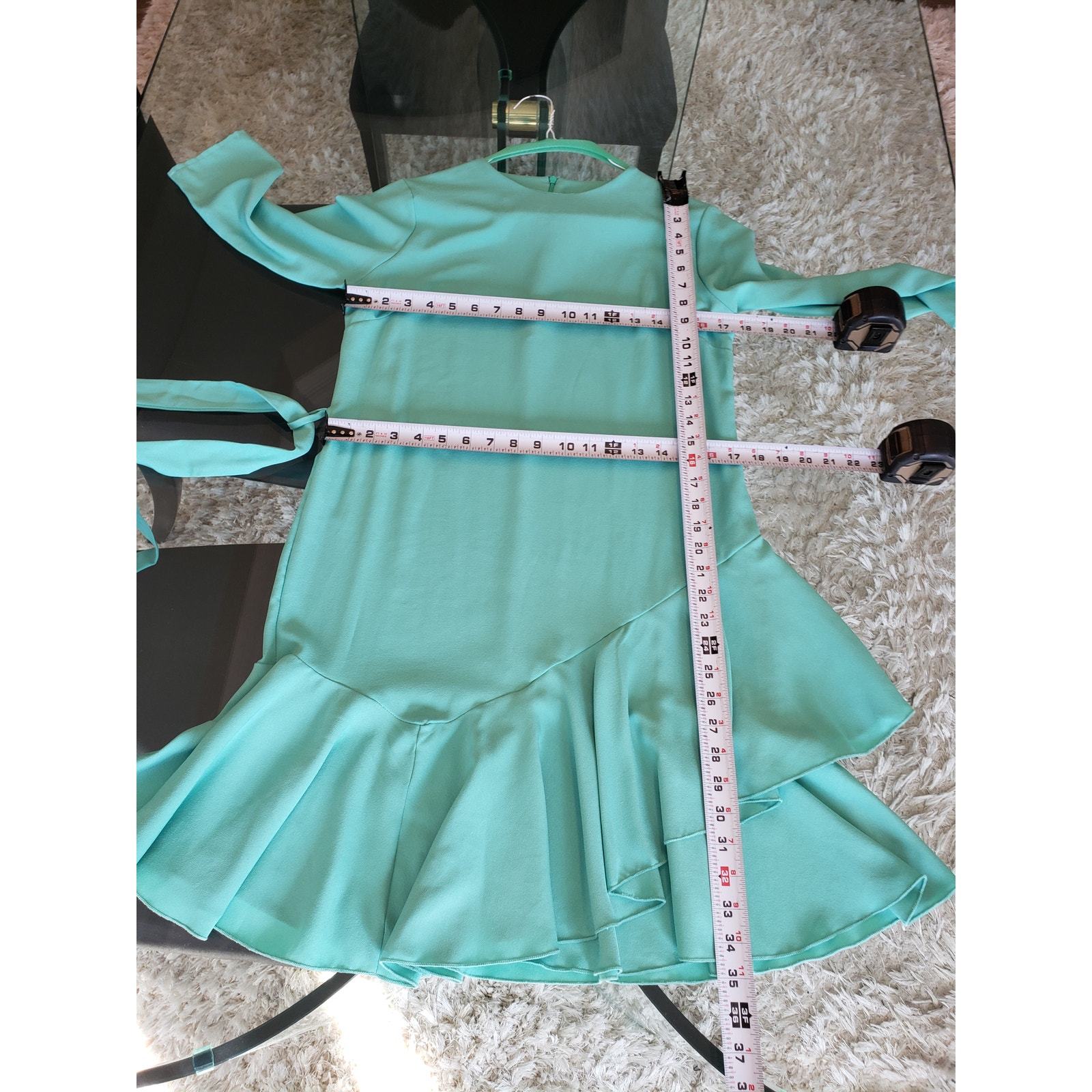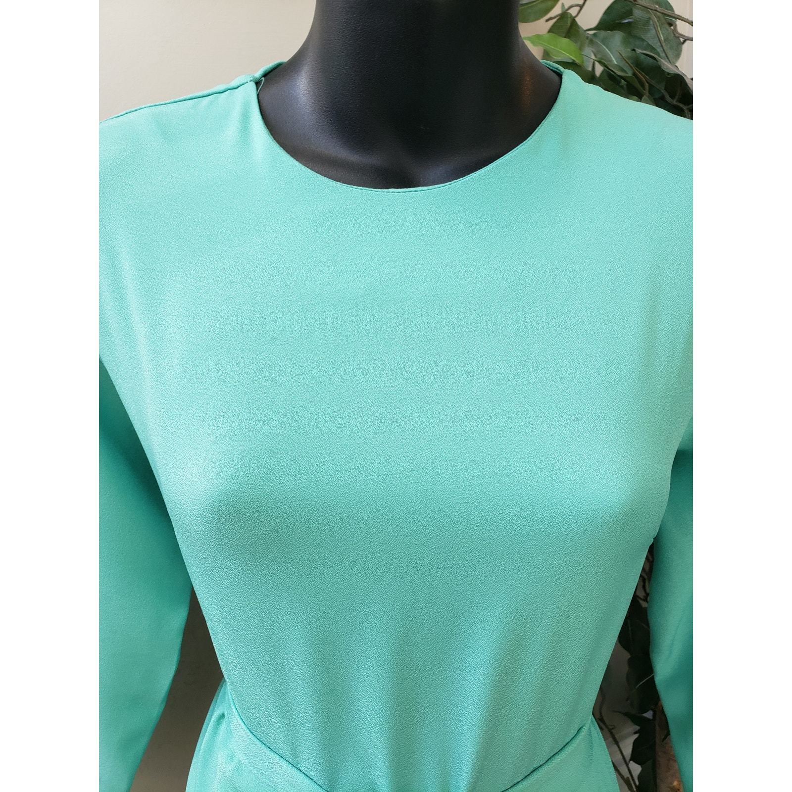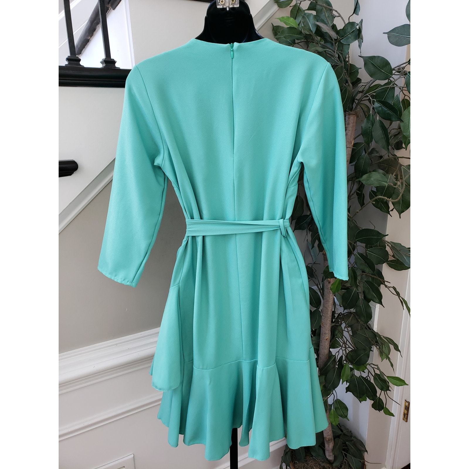 Carole Christian Sheath Dress Womens Small Aqua Crepe Ruffle Hem Tie Front