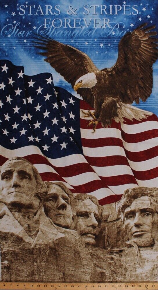 23.5" X 44" Panel Mount Rushmore American Flag Eagle Cotton Fabric Panel D371.28