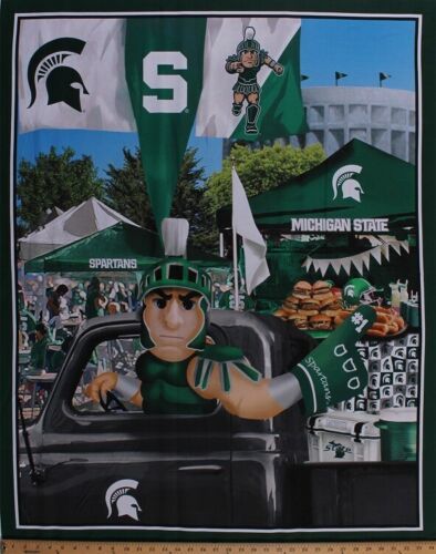 35.5" X 42" Panel Michigan State University MSU Spartans Sparty Mascot Football Fans Tailgating Tailgate Party Truck College Sports Digital Print Cotton Fabric Panel (MIST-1157)