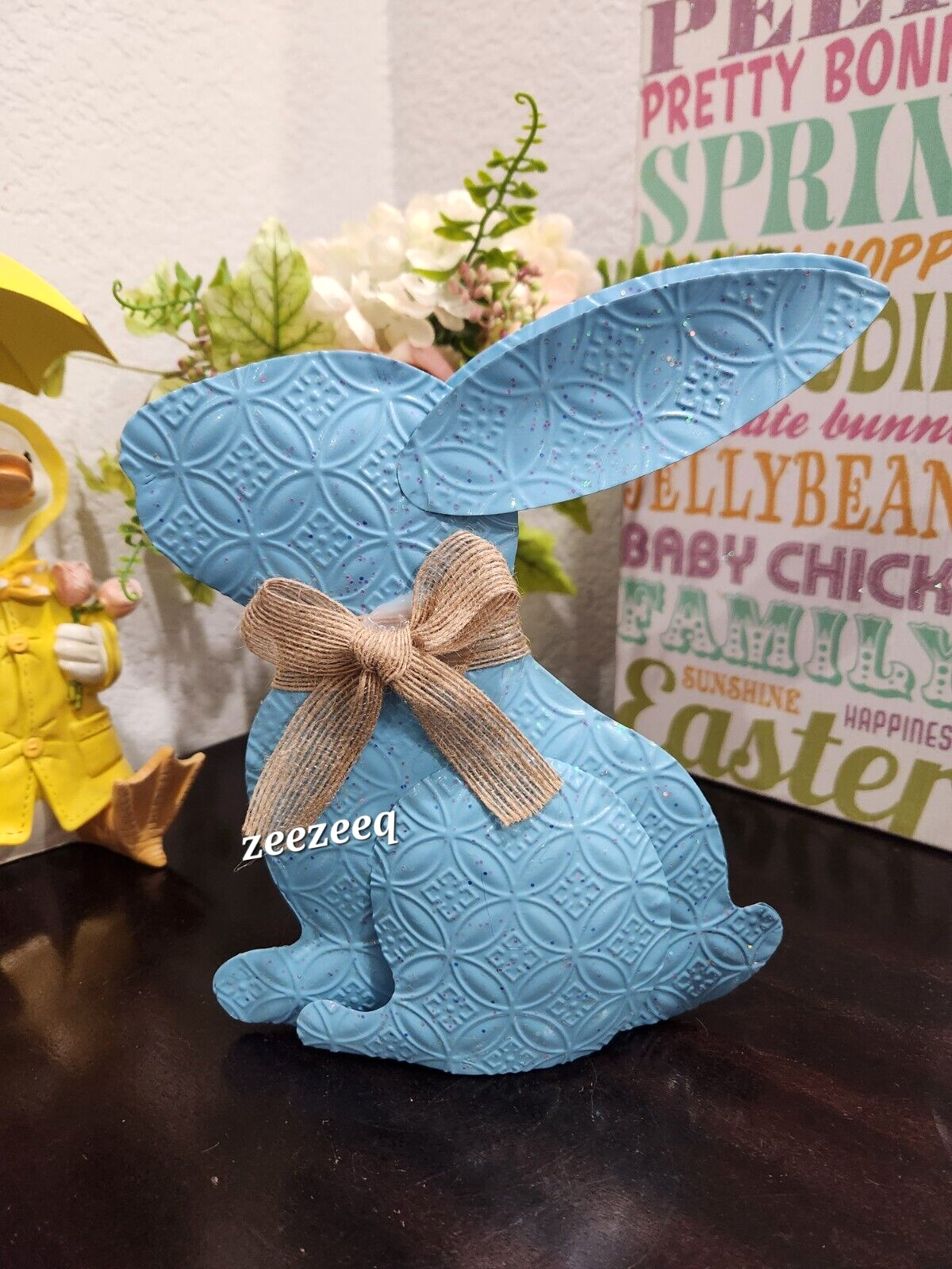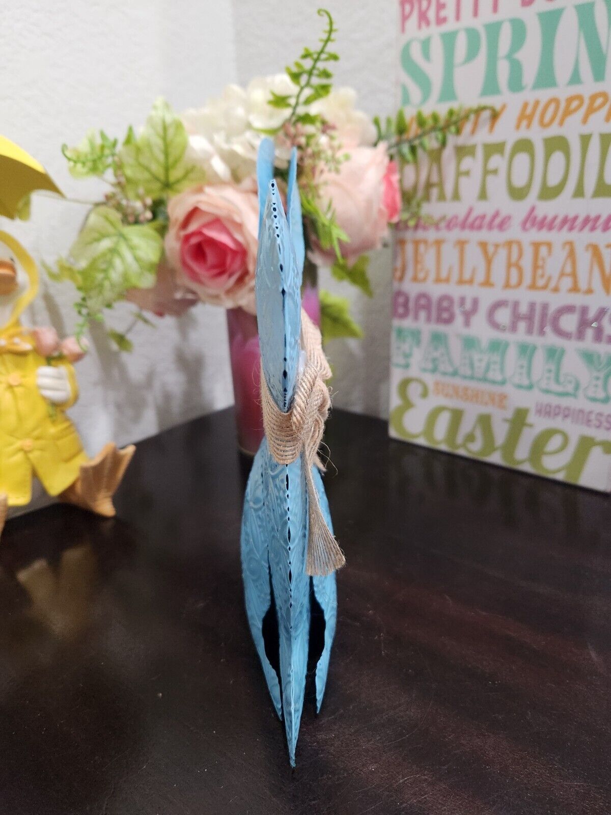 Spring Easter Blue Bunny Rabbit Metal Figurine Tabletop Home Decor 9"