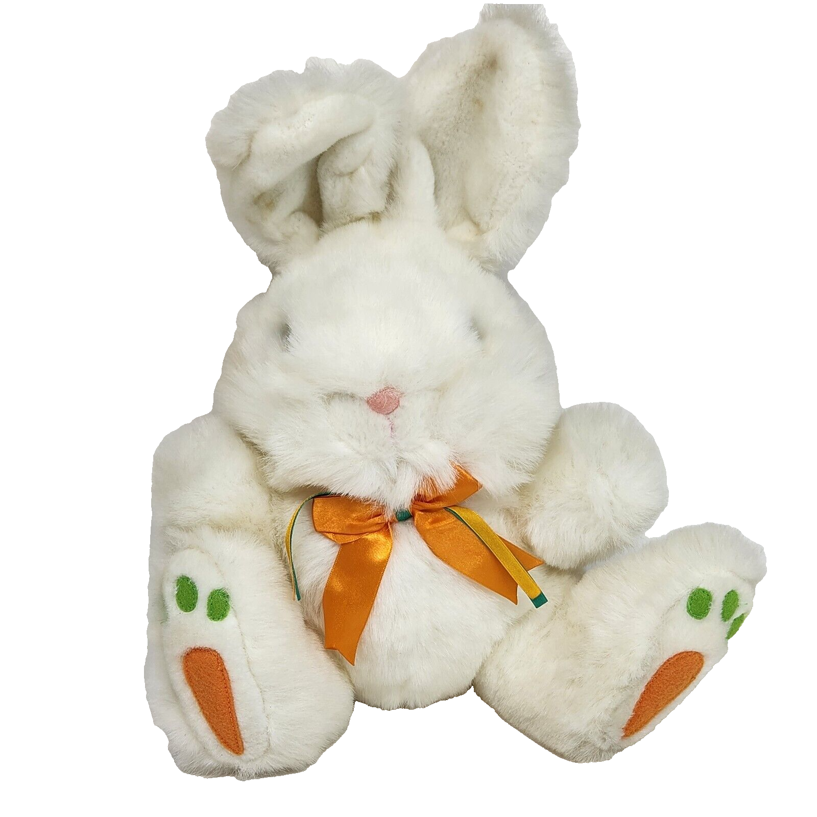 12" VINTAGE DANDEE WHITE BUNNY RABBIT CARROT FEET STUFFED ANIMAL PLUSH TOY