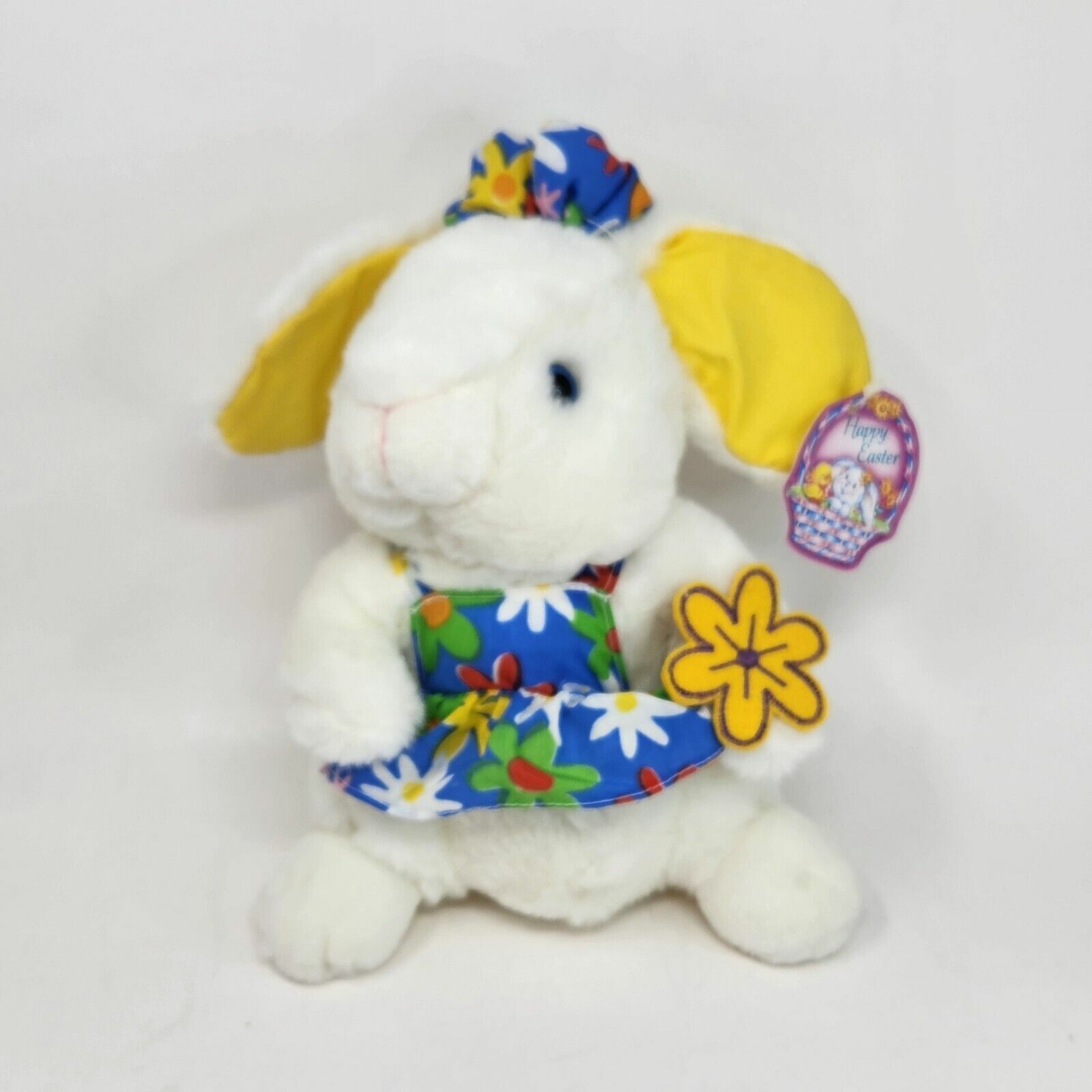 VINTAGE Tb TRADING CO WHITE BUNNY RABBIT FLOWER DRESS STUFFED ANIMAL PLUSH TOY