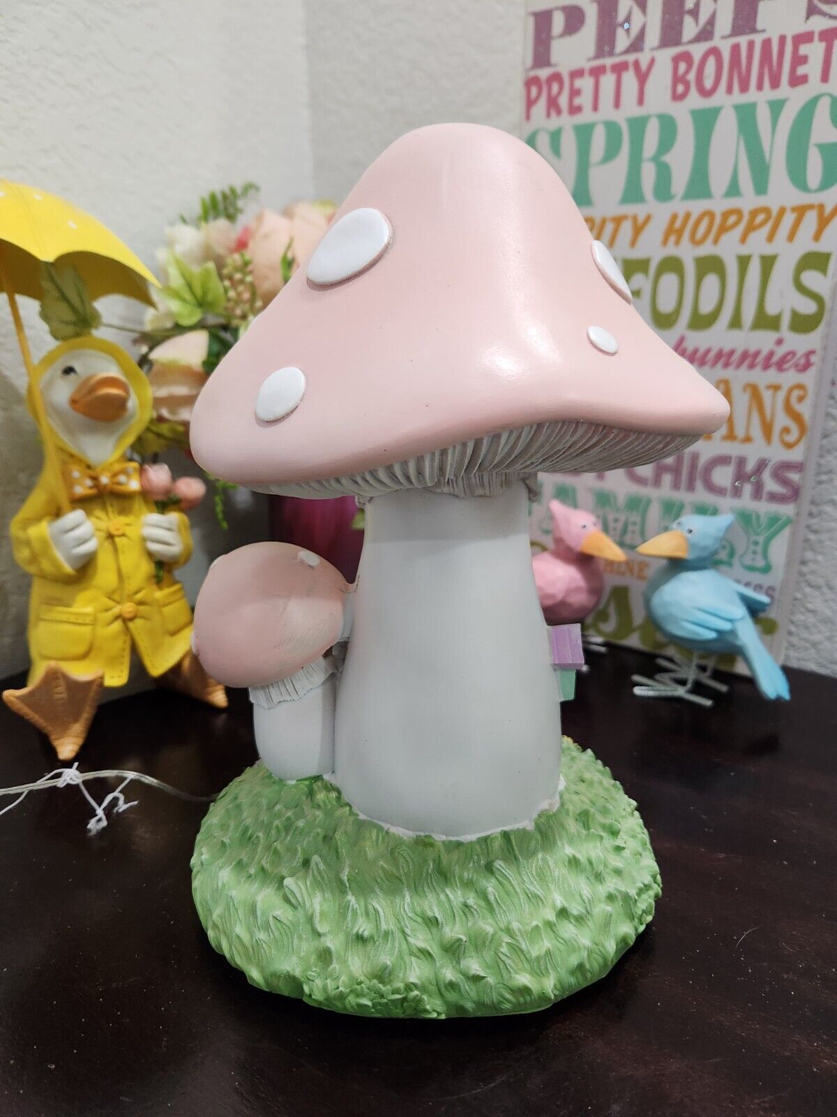 Up for sale we have this adorable Easter pink mushroom light up house for your tabletop decor. This piece will look amazing anywhere you place it. The house stands approx 10.5" tall. Super cute!! New